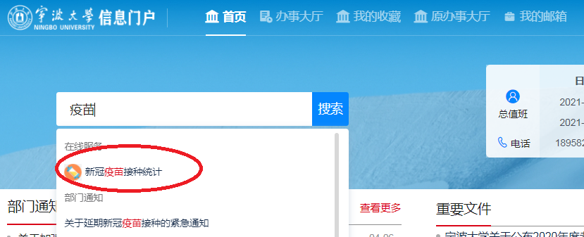 方法一:登录信息门户,搜索疫苗,点击在线服务-新冠疫苗接种统计。