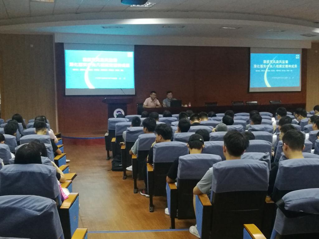 召开全体毕业生大会,邀请了宁波市纪委党风政风监督室正处级纪检监察员刘洪处长为全体毕业生进行廉洁从业教育,刘处长向同学详细介绍了中央八项规定及省市有关廉洁从业相关规定,并听过一些鲜活的案例,告诫广大毕业生必须防微杜渐,严格要求自己。