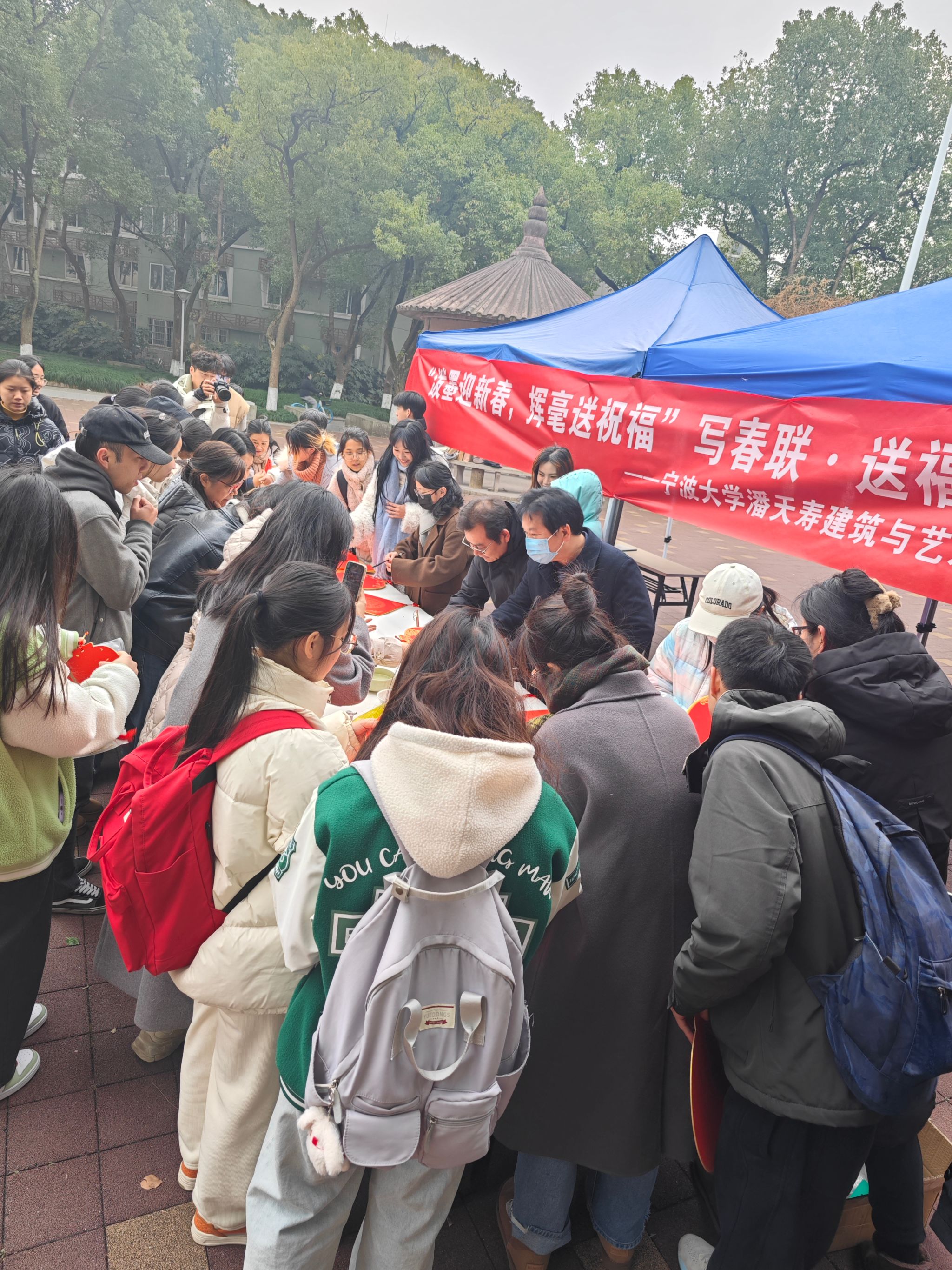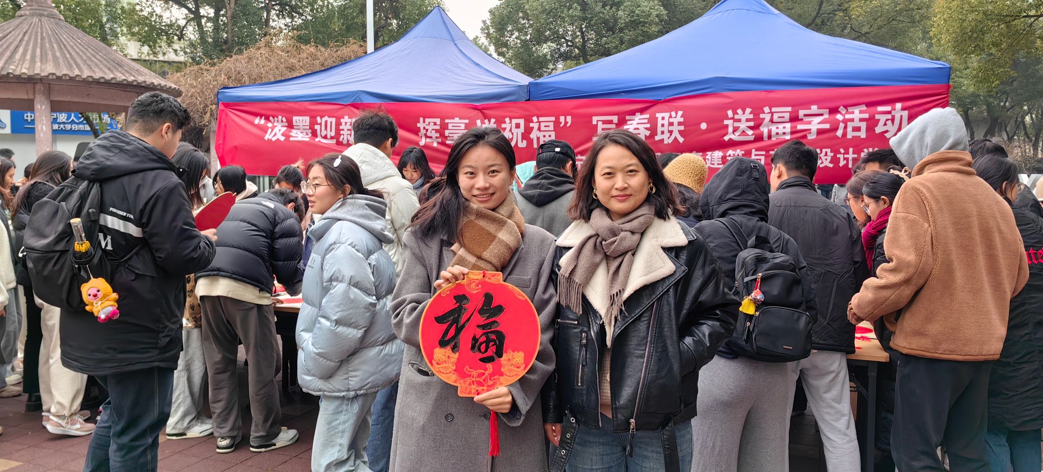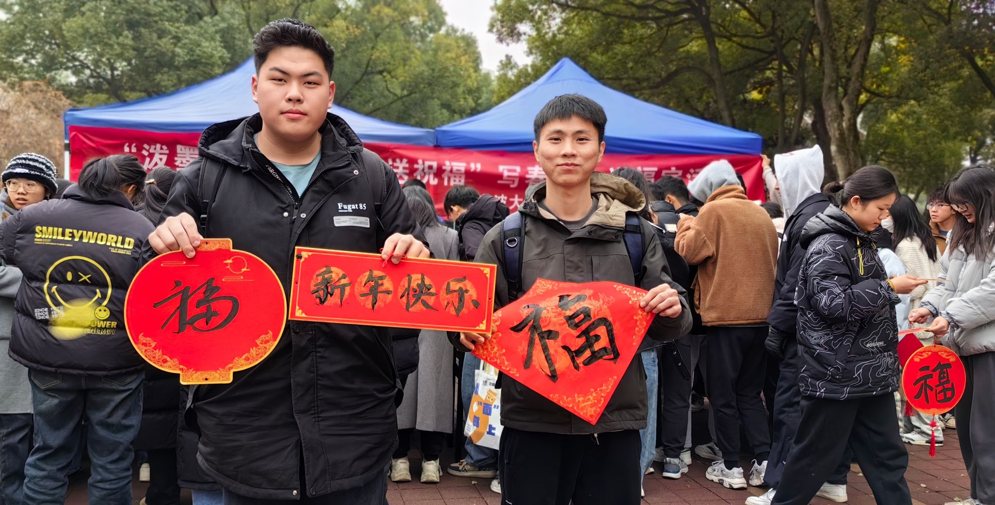 美术系师生发挥专业特长挥毫泼墨,为广大师生书写出一幅幅散发着清新墨香的春联、福字,把浓浓的年味儿和新春祝福送到了在场的师生们手中和心里。开心的老师和同学们拿着翰墨飘香的福字和春联纷纷与身边的书画家们合影留念。这场活动共送出约六百套春联和福字,为冬日的宁大校园增添了浓郁的迎春氛围,打造了校园美育的新风尚。
