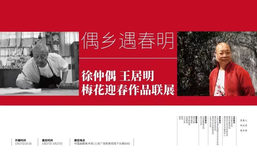 、潍坊市美术协会、潍坊市文艺志愿者协会、于希宁艺术馆承办的“偶乡遇春明——徐仲偶、王居明梅花迎春作品联展”在位于潍坊市文化艺术中心的中国画都美术馆举办。此次画展将持续到3月27日。
