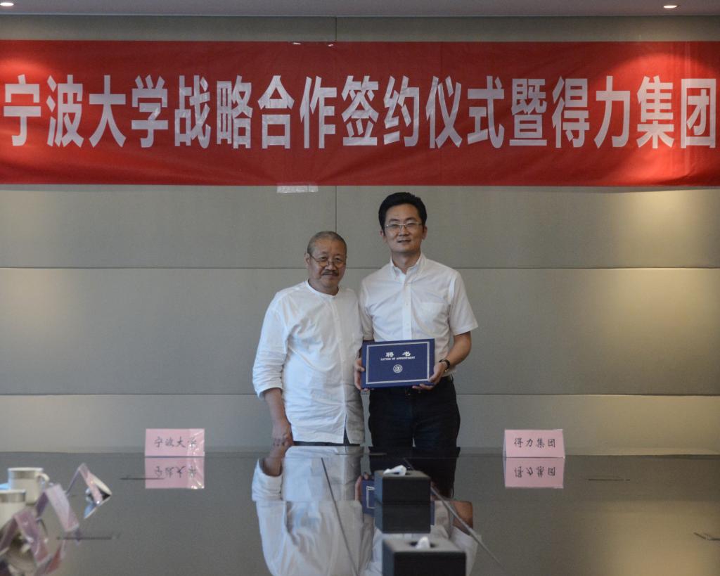 院长徐仲偶教授向得力集团副总裁陈雪强颁发兼职教授聘书。