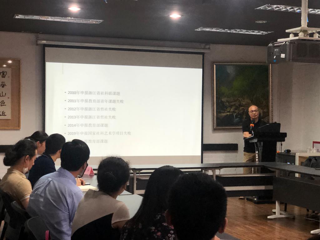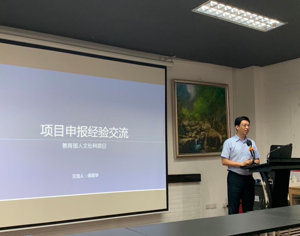 盛羽副教授、我院工业设计系侯冠华副教授,共同主讲“学术讲座2020年第3讲——教育部人文社科项目申报讲座”。讲座由分管科研副院长霍发仁主持,各专业博士及意向申报人参加讲座。