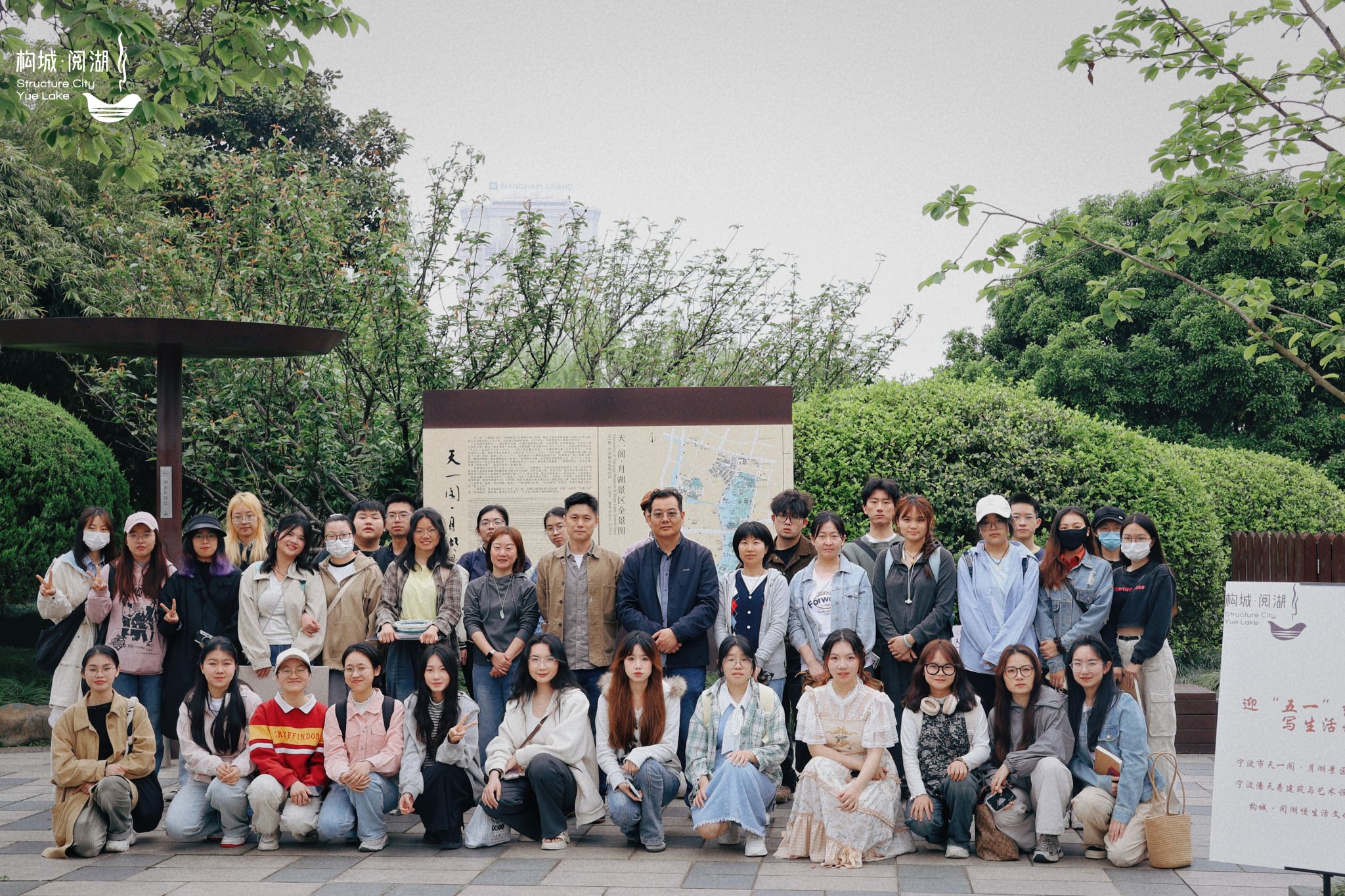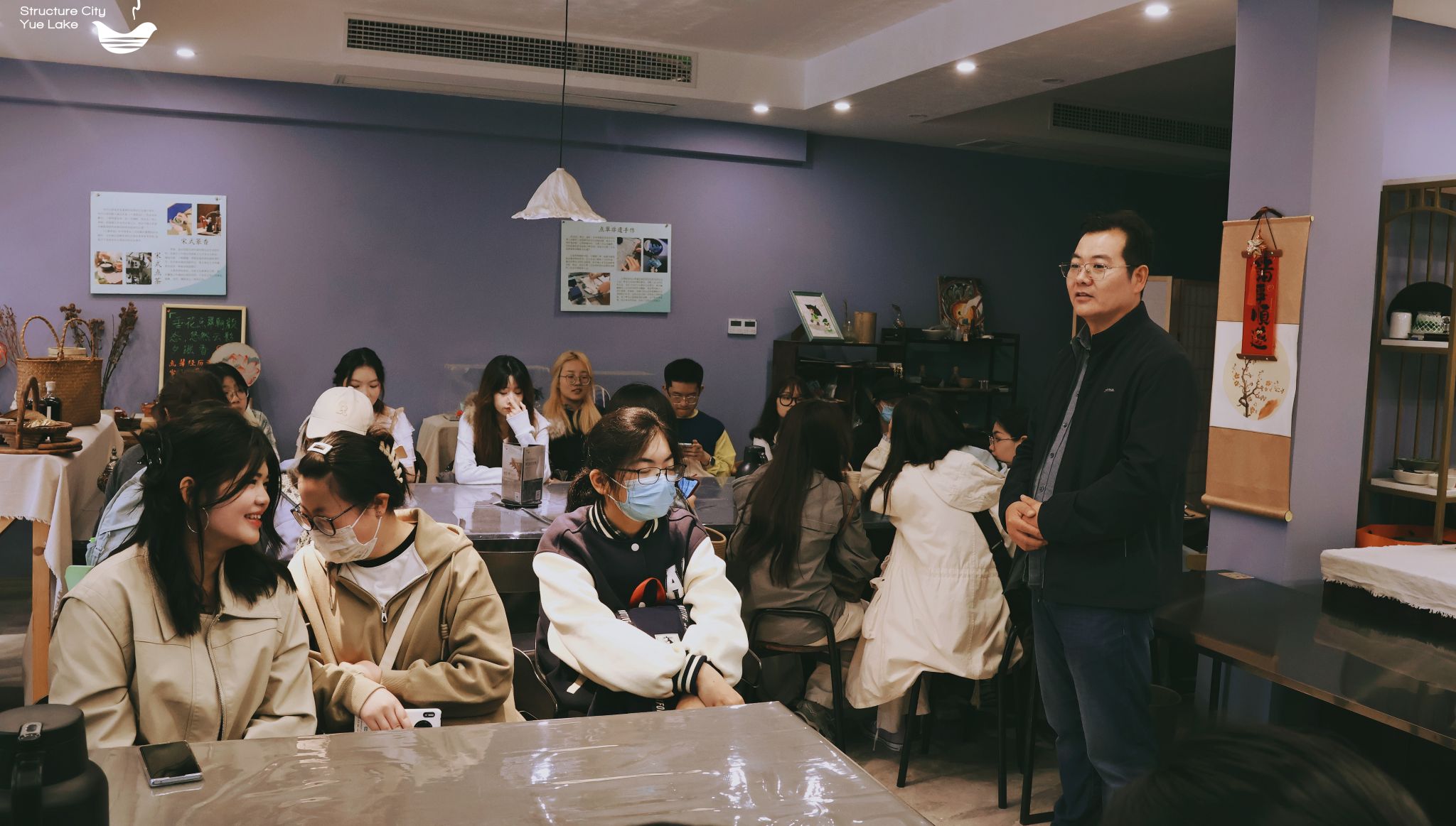 活动伊始,师生们首先参观了构成·阅湖慢生活文化空间,听取了负责人的介绍和讲解,通过观摩和学习,比较深入地了解了月湖的历史源流和文化价值。老师们也为我们讲述了该文化空间推出的美育和非遗课程,希望同学们积极加入课程合作学习。