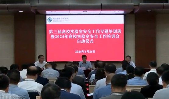 2024年4月26日,教育部科学技术与信息化司、高等教育司组织召开“2024年高校实验室安全工作培训会”。我院实验中心赵倩、谢燚参加线下会议,相关实验室负责人以视频会议方式参加学习。
