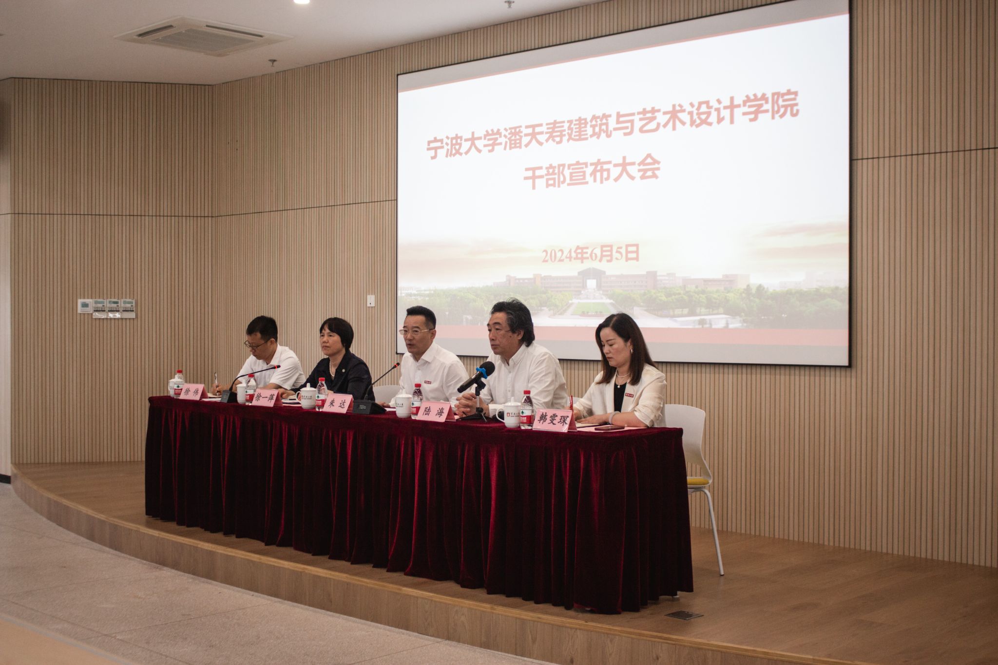 执行院长陆海主持,校党委书记朱达、校党委组织部副部长徐伟及全体教职工参会。