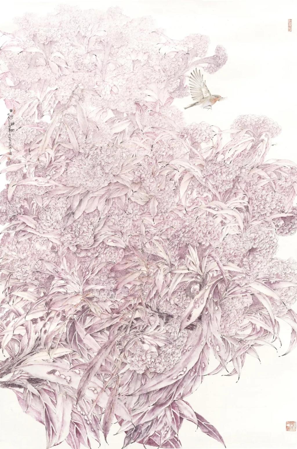 教授、宁波市美术家协会副主席李采姣近年来在全国各地写生、创作精选出的59幅花鸟作品,展示了自然界各具特色的美。展览分花卉、蔬果、鸟虫、海洋、胡杨、鸡冠花六个系列进行展示,作品呈现出气象万千的创作风貌,展现出大自然生命力的绽放,花鸟画内在的能量和美对人性的抚慰。这些作品以大写意、小写意、没骨、勾线淡彩等为主,把生活美学概念融入其中,让人在观展的同时体会艺术和生活、美学和环境等时空交错的美感。