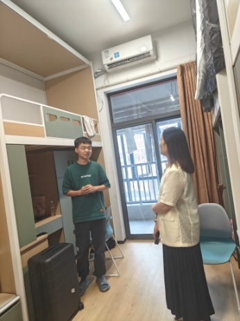 党委书记韩雯琛、党委副书记刘秉印以及研究生辅导员张明慎共同来到研究生新生宿舍,走访探望2024级研究生新生。