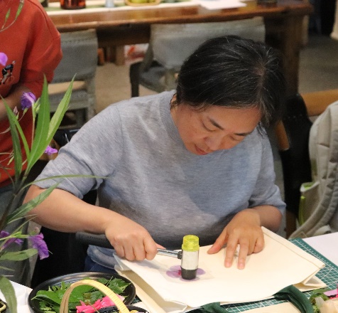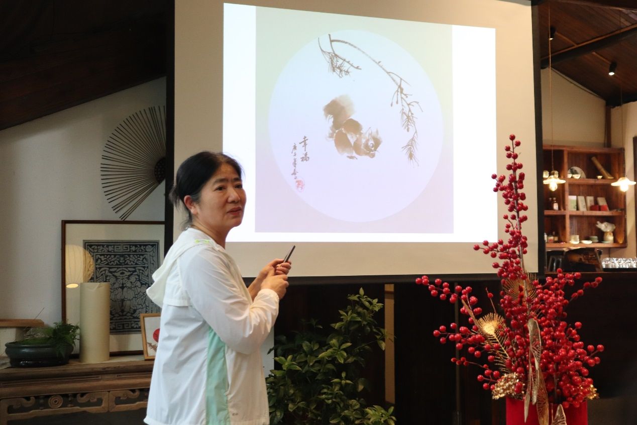 活动第二阶段,由老师们做分享。首先由刘淑娟老师分享主题画创作,她以墨竹、花鸟等为例,介绍了国画元素的构图、上色和创作技巧,鼓励大家以墨为海,以笔为舟,发挥想象力,创作出属于自己的绘画作品。这次分享让学生们体验到绘画创作的魅力,也加深了他们对中华优秀传统文化的认识。