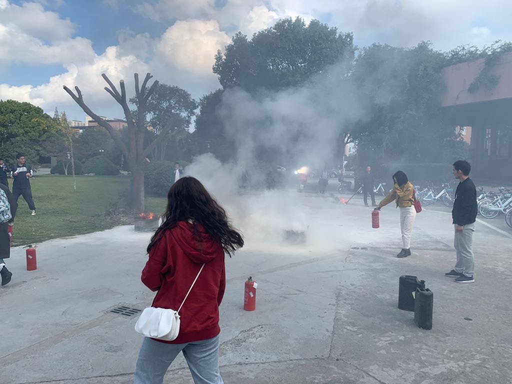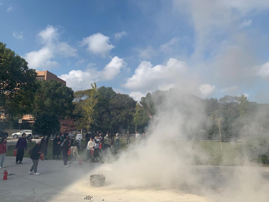学校保卫处徐老师围绕“关注消防、生命至上”主题,向两院师生介绍了火灾发生条件,火灾注意事项,重点讲解了面对火灾要强化意识,提高技能,学会报警,学会扑救等灭火和逃生技巧等。讲座后,在西区邵逸夫图书馆前,保卫处老师演示了灭火器的使用方法、灭火步骤等,两院师生按照演示方法,拿起灭火器,拉开消防栓,依次开展灭火练习,成功火盆中燃烧的火焰扑灭。