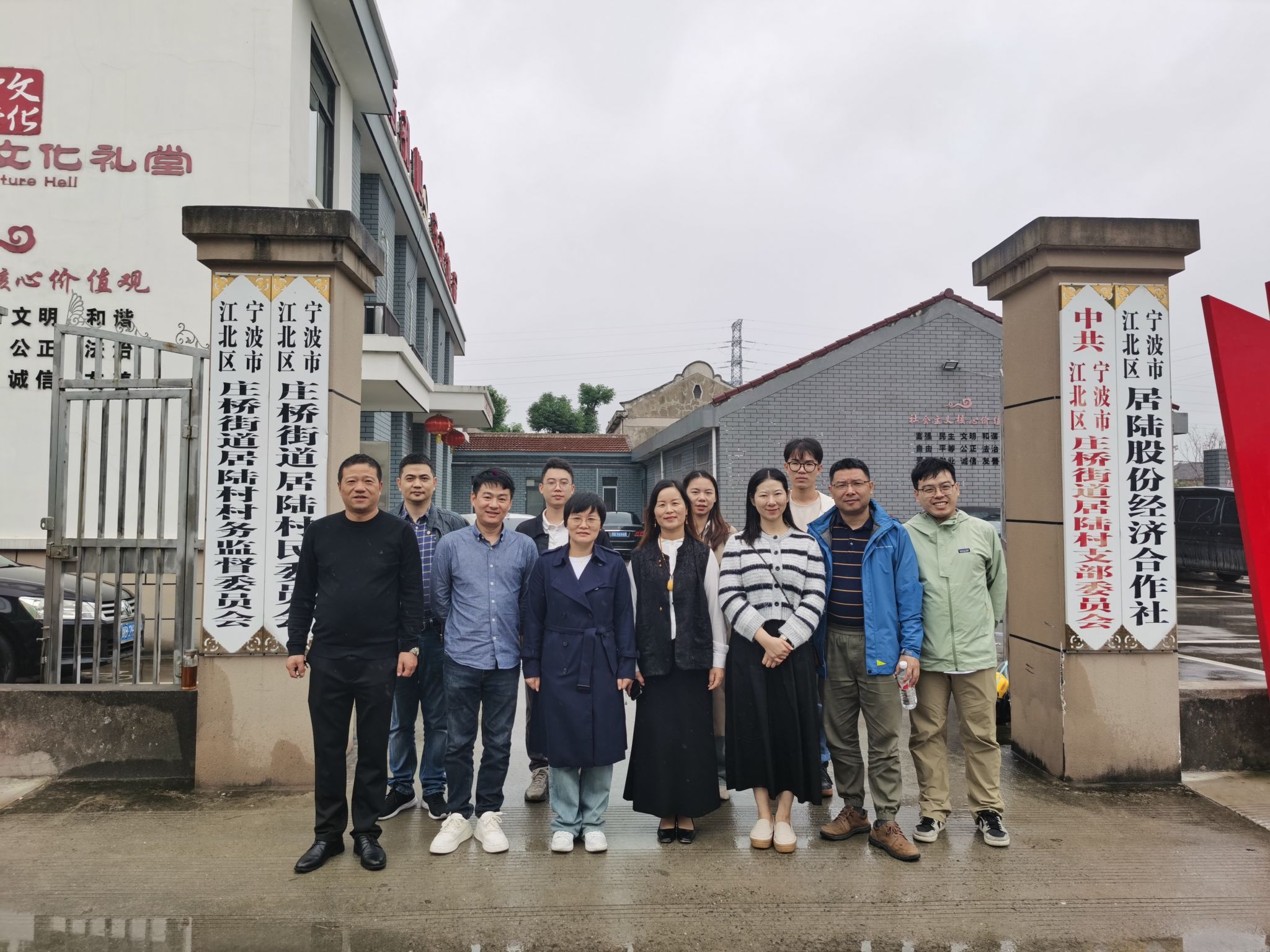 师生在庄桥街道范婷嫣副主任和居陆村党支部书记余骏杰的陪同下,实地考察了居陆村。金秋时节的居陆村稻谷丰盈,风景如画,一派丰收的气象。大家深入田间地头,村屯农家,思考改造赋能的路子。