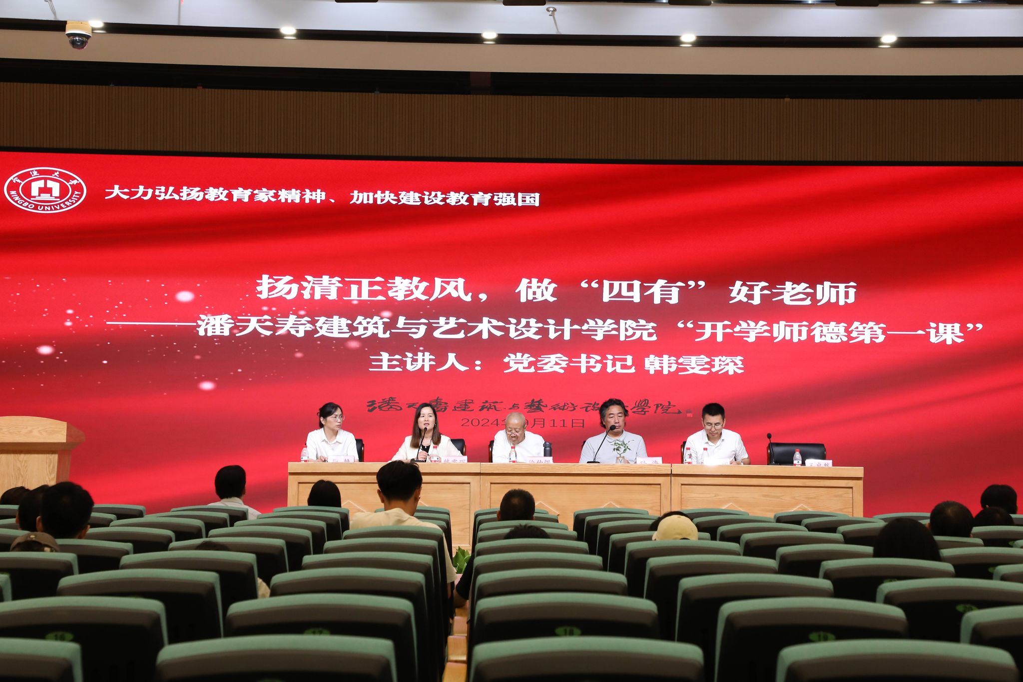 党委书记韩雯琛以《扬清正教风,做“四有”好老师》为主题,为广大老师宣讲“开学师德第一课”。