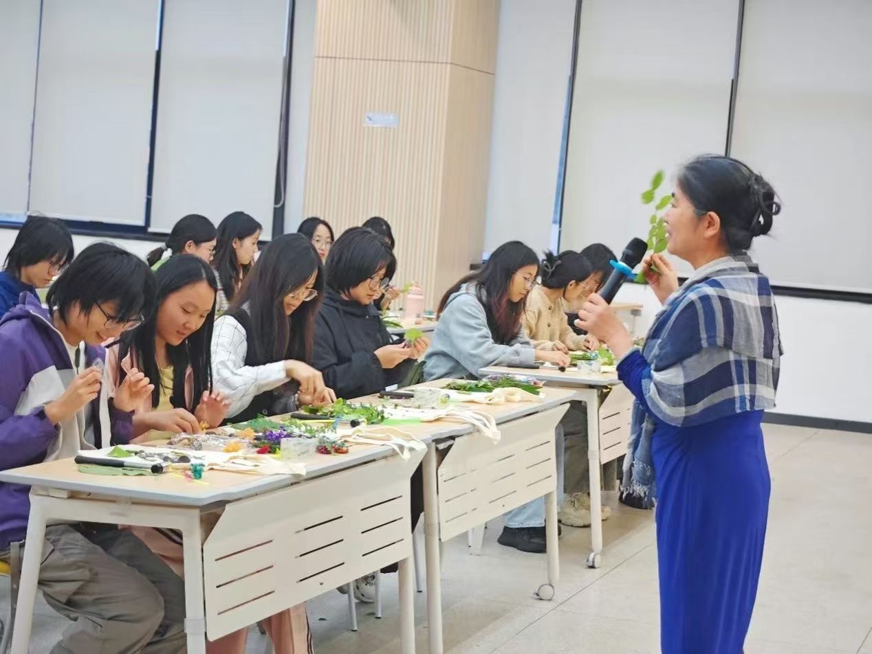特别邀请了退休教师刘淑娟老师,带领着同学们一起体验植物印染。