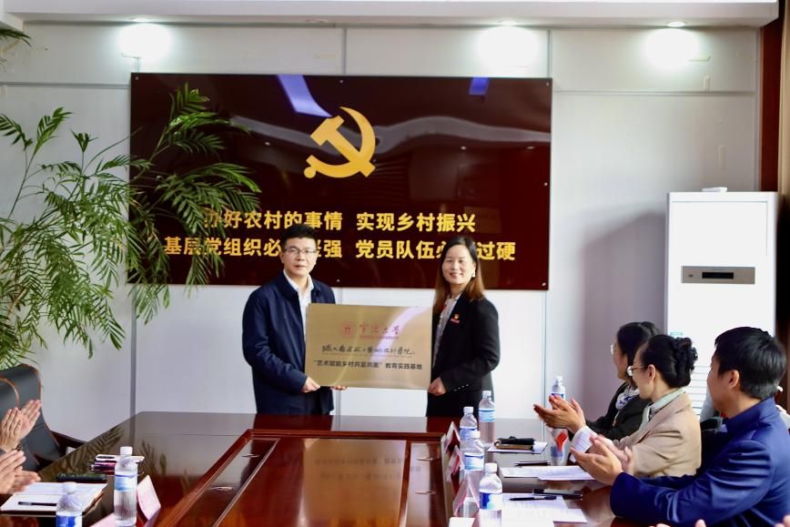 “艺术赋能乡村共富共美”实践教育基地的铜牌,旨为横坎头村乡村经济与文化发展提供源源不断的艺术和人才人力资源支持。