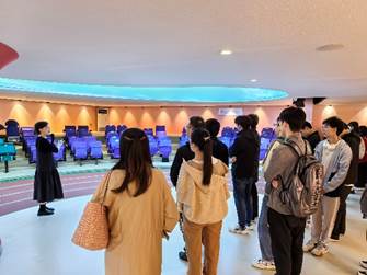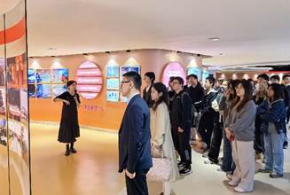 师生参观学习了公司的主要产品及业务,详细了解了公司的发展历程、电影天堂以及产品设计理念。参观过程中,在讲解员的引导下,电影天堂