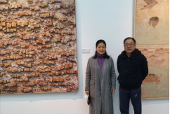 图一:综合材料绘画双年展开幕式,图二:李琼老师与中国美协综合材料绘画与美术作品保存修复艺委会副主任李耀林老师在作品前合影