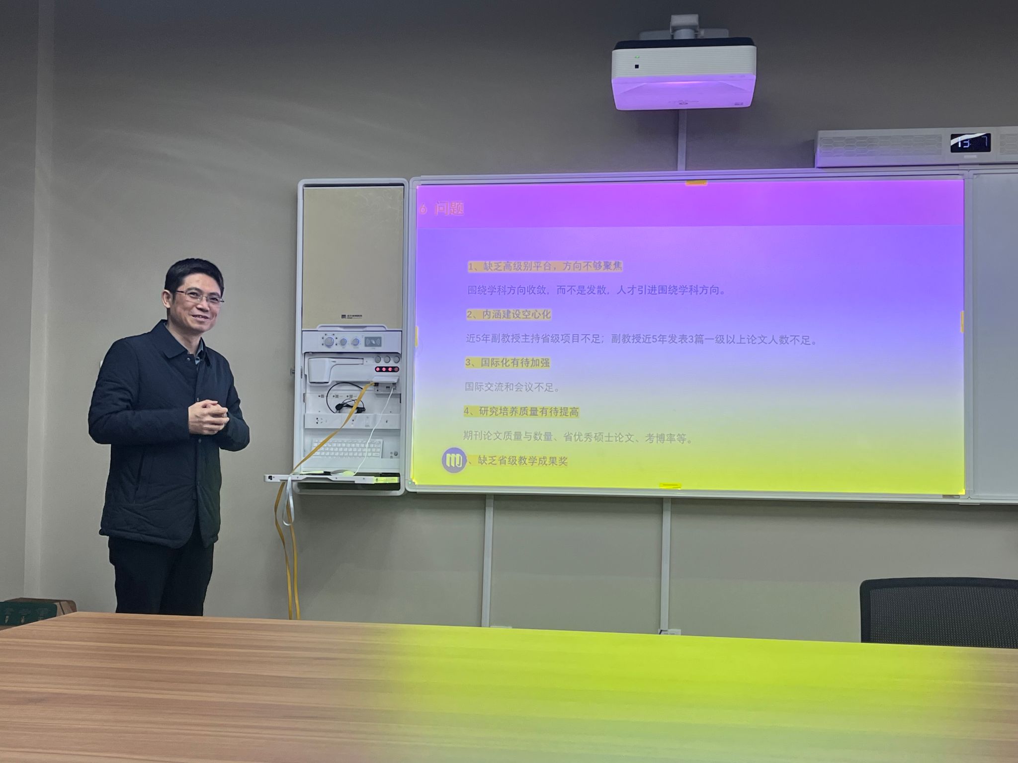 在教学楼七楼开放会议室召开2024年度系部、学科(学位点)负责人建设成效汇报会。各系部、学科(学位点)分别进行述职汇报。电影天堂