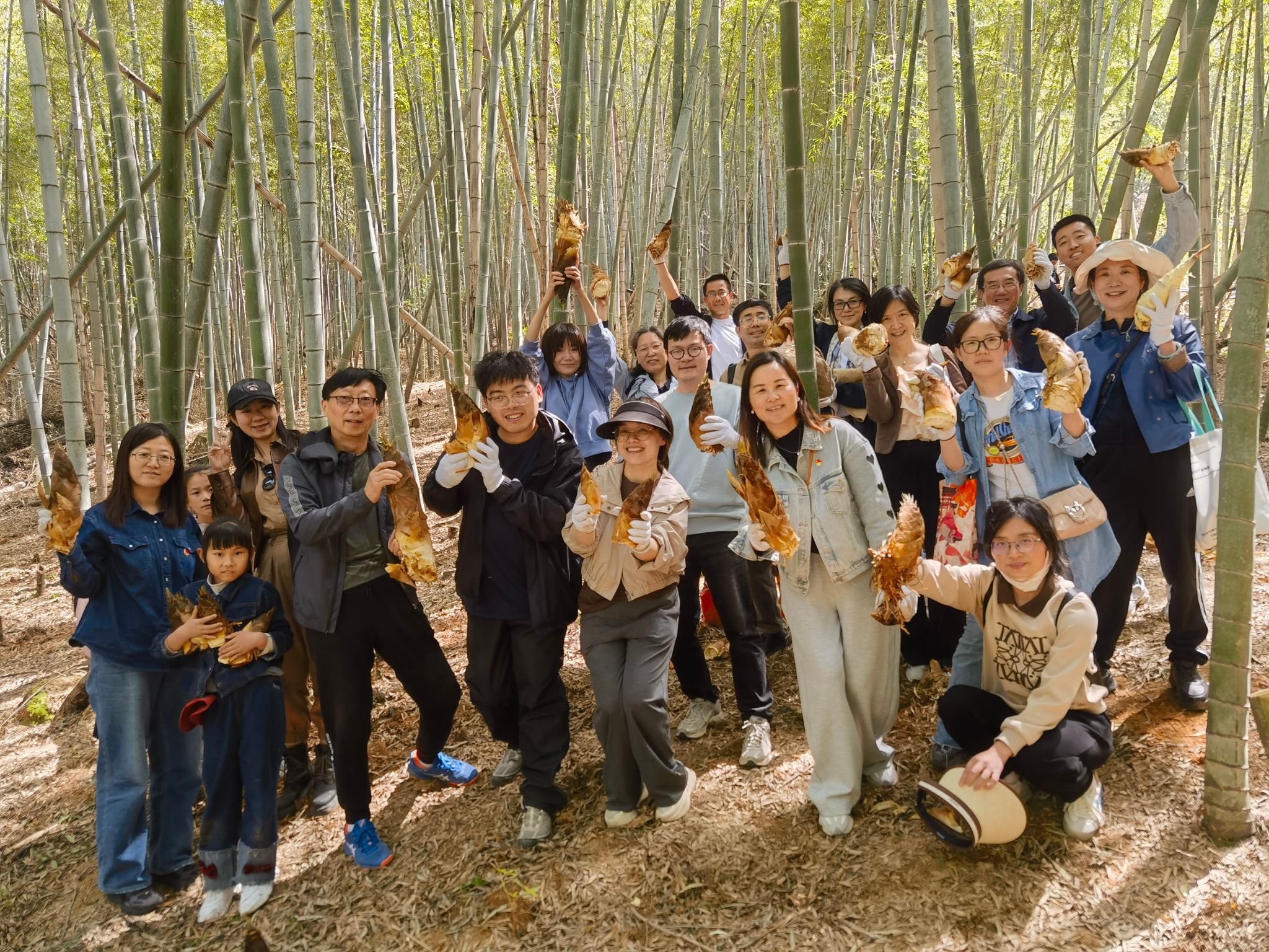 午餐后,老师们齐聚在郊外的竹林,漫步林间感受盎然春意。期间大家还进行了挖笋体验,穿梭于翠绿的竹林间,寻找着春笋的踪迹,与大自然亲密接触。劳作中大家互相交流挖笋技巧,分享生活趣事,现场欢声笑语不断。经过几个小时的努力,大家收获满满的开心与喜悦。