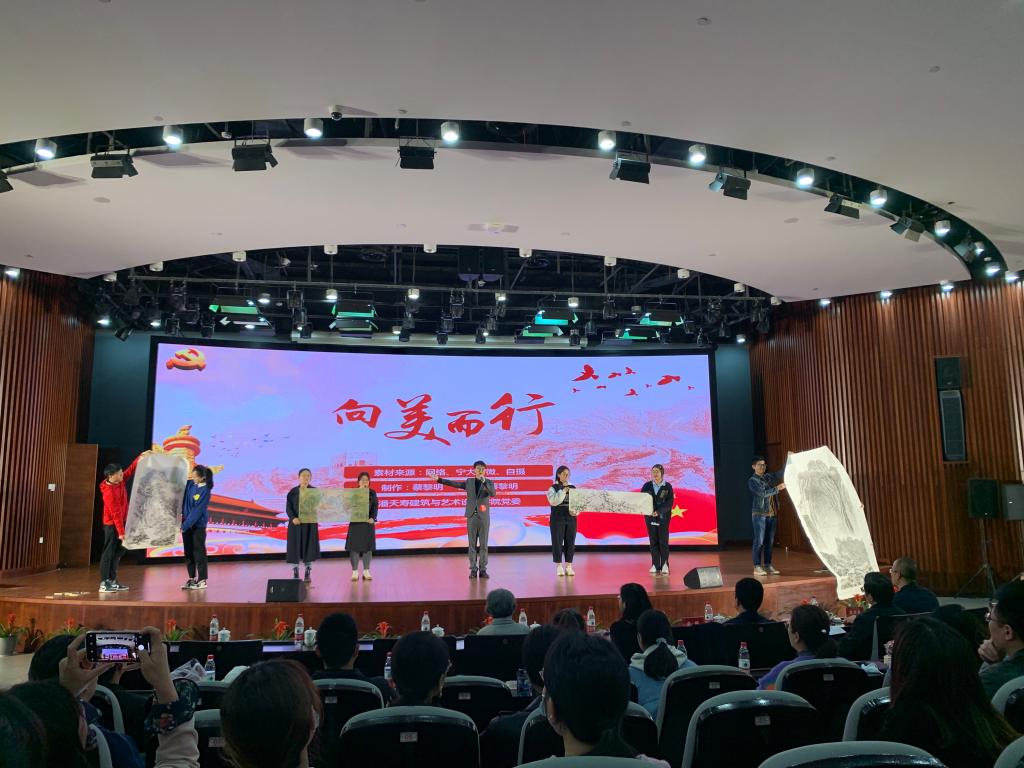 独角兽新媒体公益艺术工作室帮扶困难群众,推进乡村振兴的案例,表明向美而行的任务在于立德树人,路径在于扎根时代生活。最后,8位学生党员一同上台,向在场观众展示了电影天堂