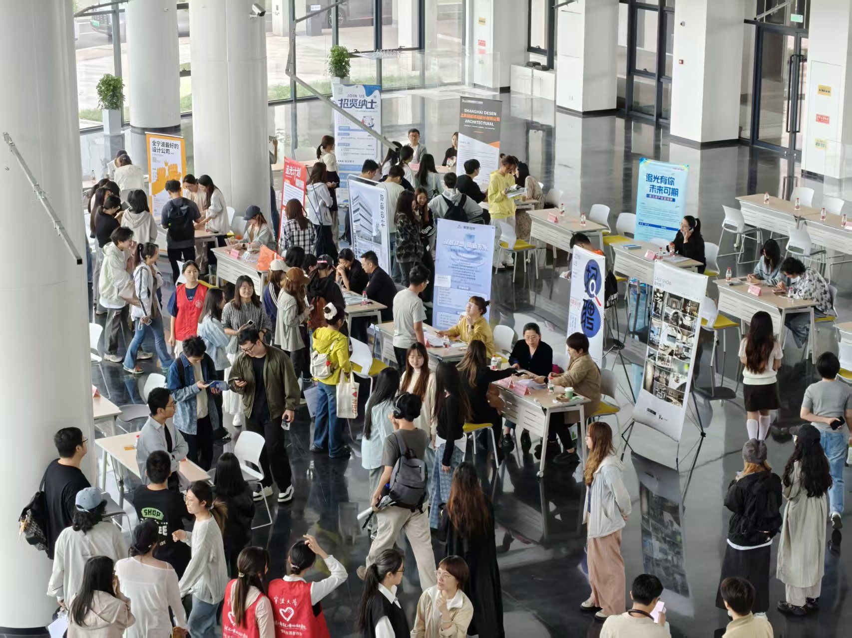 招聘会现场,来自建筑与艺术设计等领域的优质企业齐聚一堂,为学生们开启职业大门。