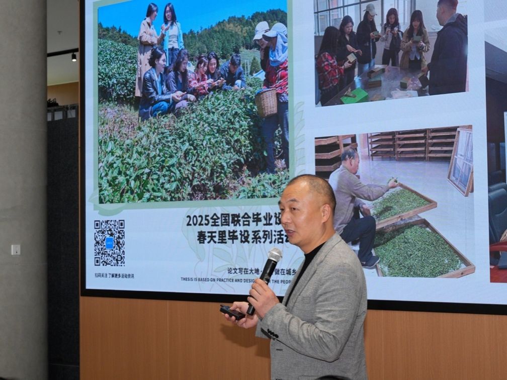 东华大学陈庆军教授结合“UGD五年”的全国联合毕业设计实践,讨论了AI时代设计知识的重构逻辑,并分享了设计教育在系统性协同方面的探索成果。