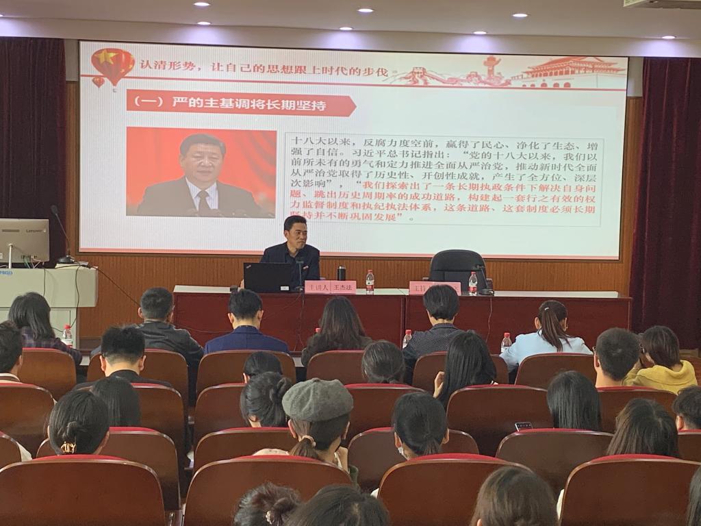 4月21日上午,校纪委书记王杰法赴西校区,为电影天堂 、教师教育电影天堂 、音乐电影天堂 党政领导班子、重岗重责人员等90余位师生代表作题为《在实现事业发展和保障人员平安双重目标中履职尽责》的廉政讲座,讲座由音乐电影天堂 党委负责人主持。