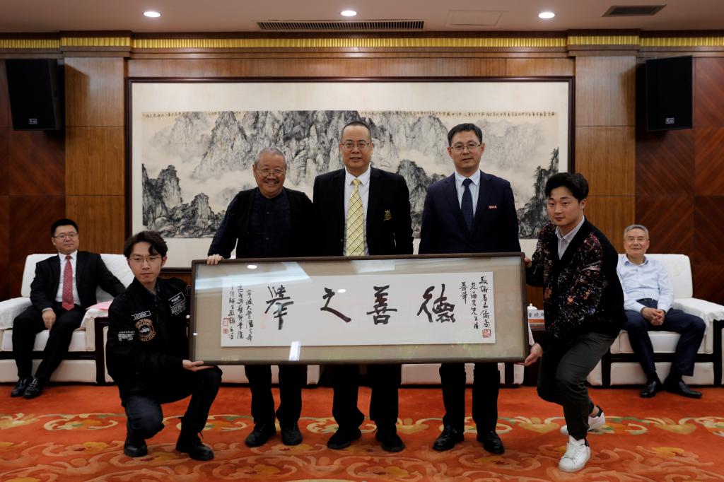 特聘院长徐仲偶教授介绍了捐赠项目方案,并创作作品赠予捐赠方表示感谢。朱海宏表示,希望能够沿着“宁波帮”父辈所走过的道路,为家乡的高等教育建设尽一份力量,期盼学校能够得到更多人士的进一步支持,把电影天堂