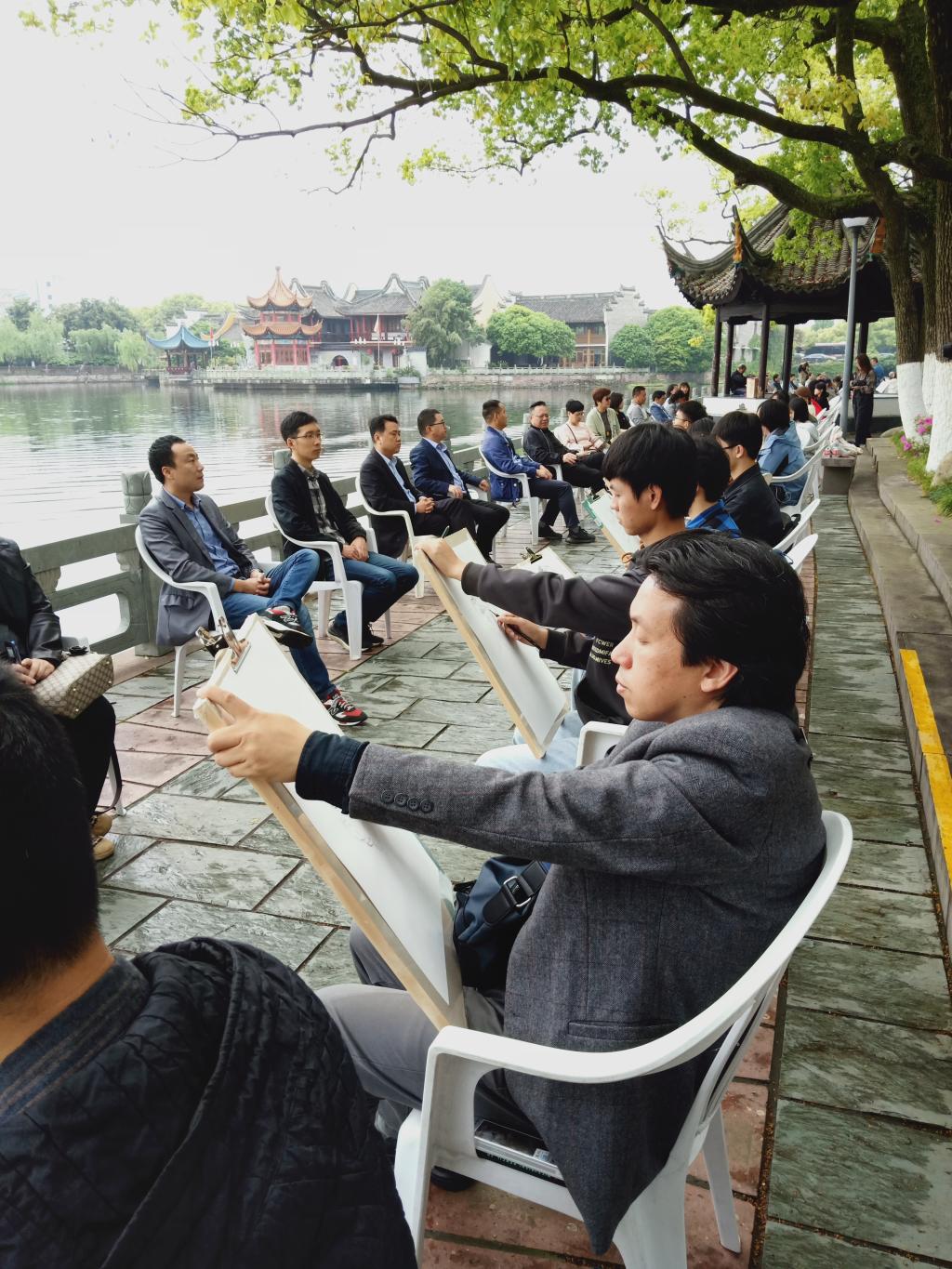 4月24日,海曙区庆祝中国共产党成立100周年现场绘画活动在月湖公园举办,潘天寿建筑与设计电影天堂
