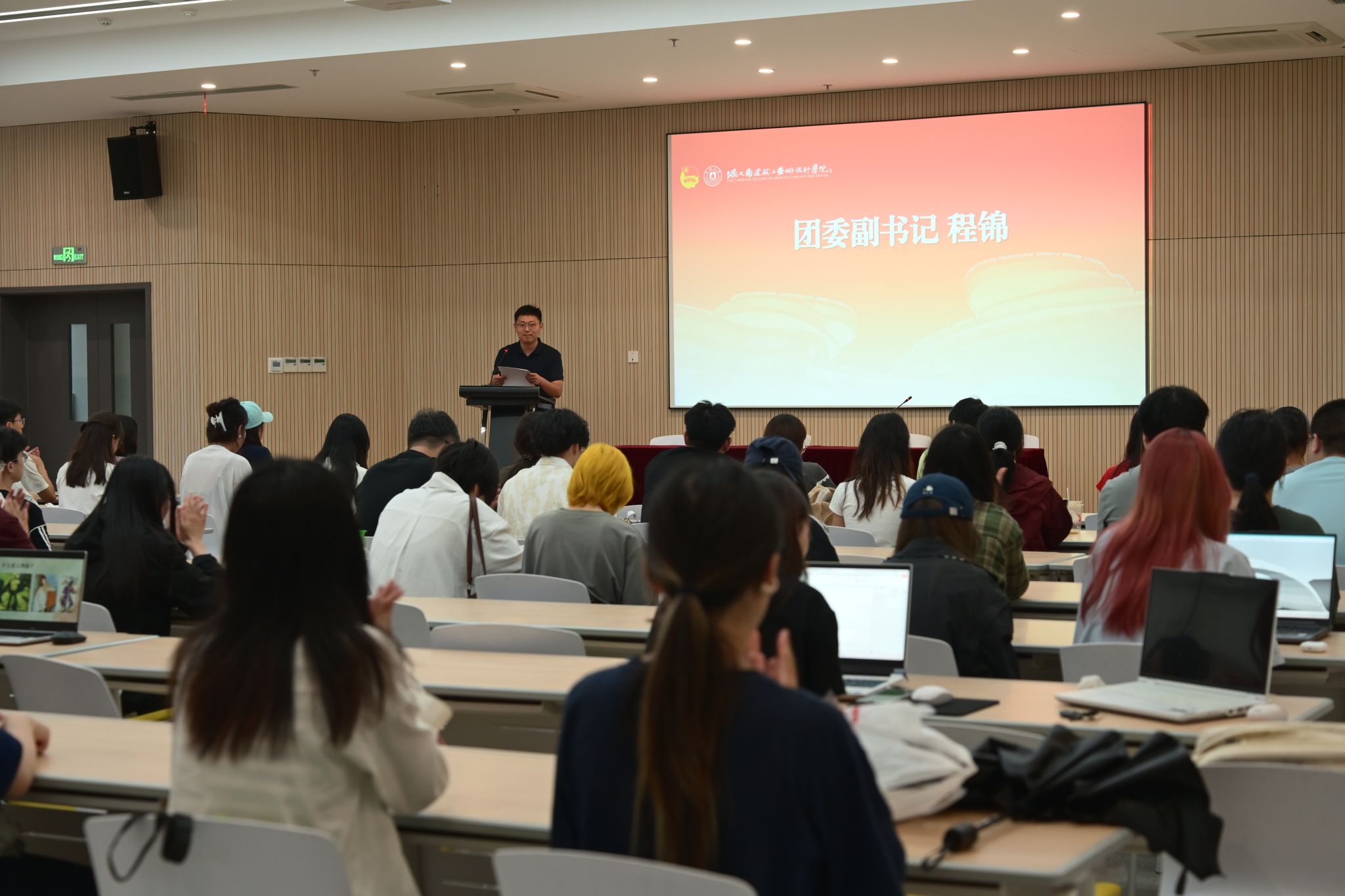 团委副书记程锦老师做动员发言,希望全体实践队员:一要心怀“国之大者”,在深入基层的生动实践中“自找苦吃”,将创新思维与实干精神融入服务地方发展的具体行动;二要发挥专业所长,在乡村振兴、文化传承、社区美化等领域展现潘艺学子的独特价值;三要时刻筑牢安全防线,严格遵守实践纪律,增强自我保护意识,确保实践活动平安、顺利、圆满。