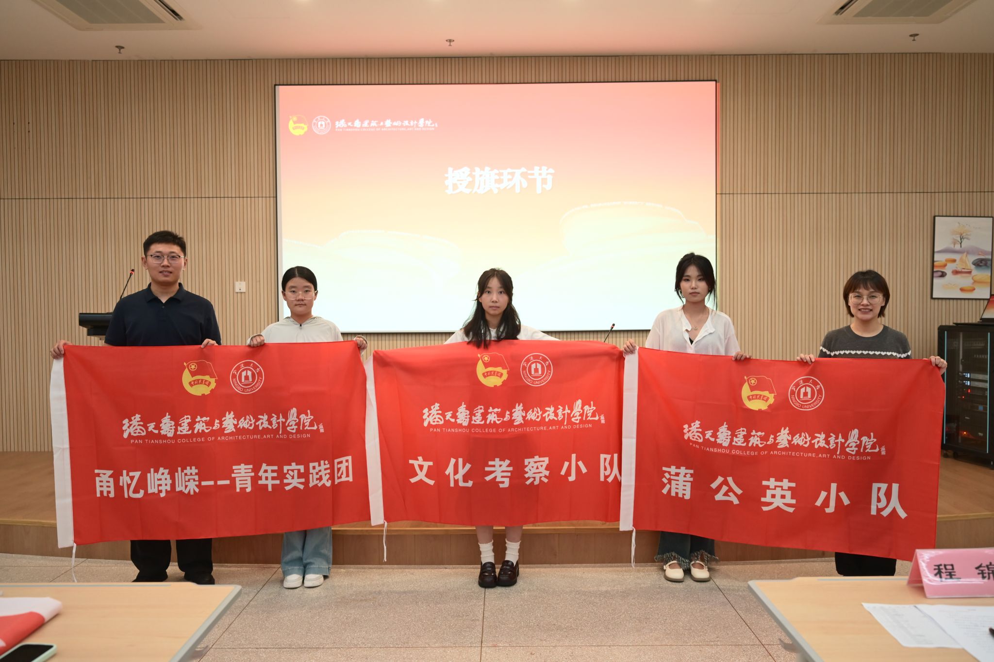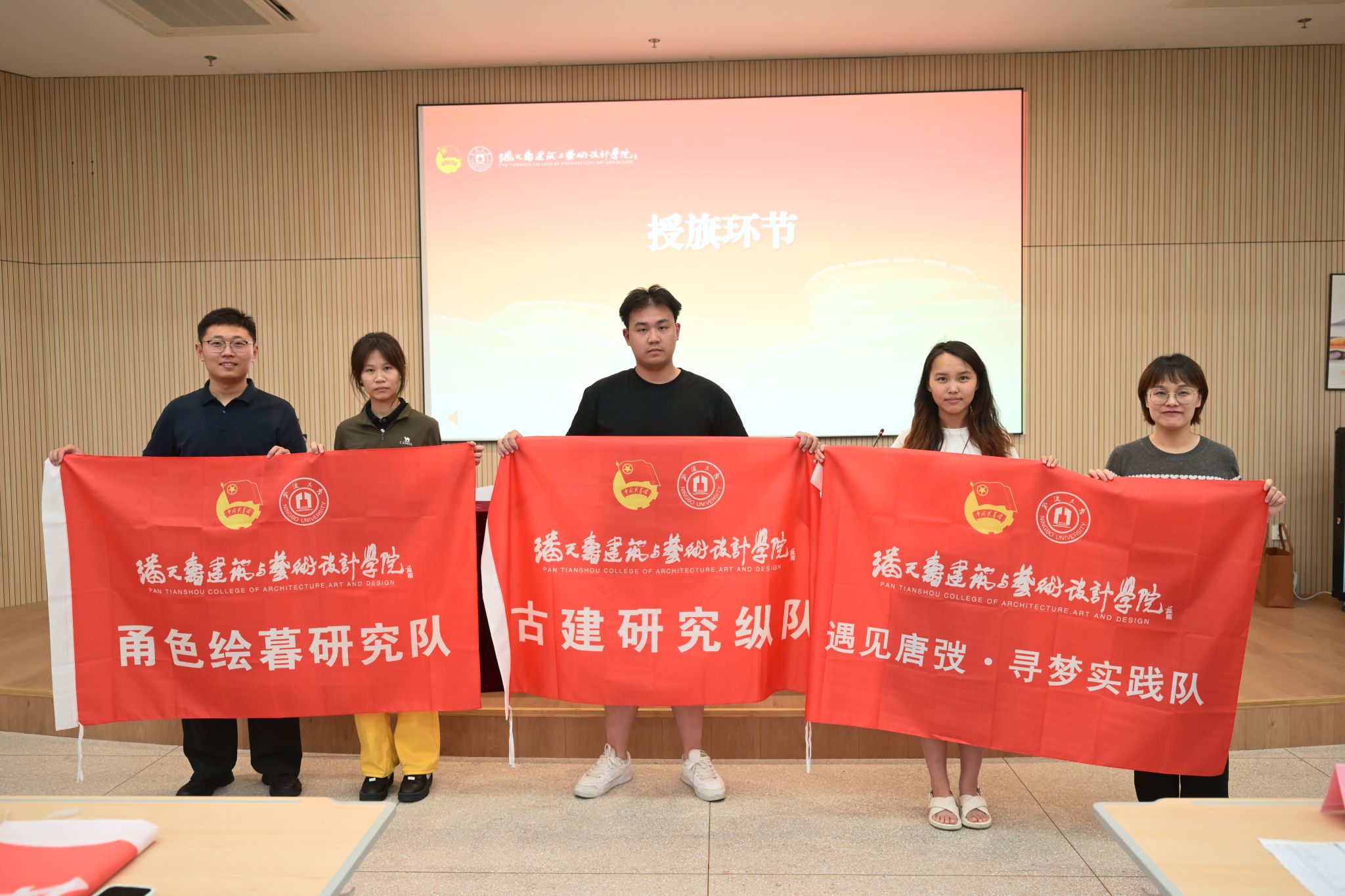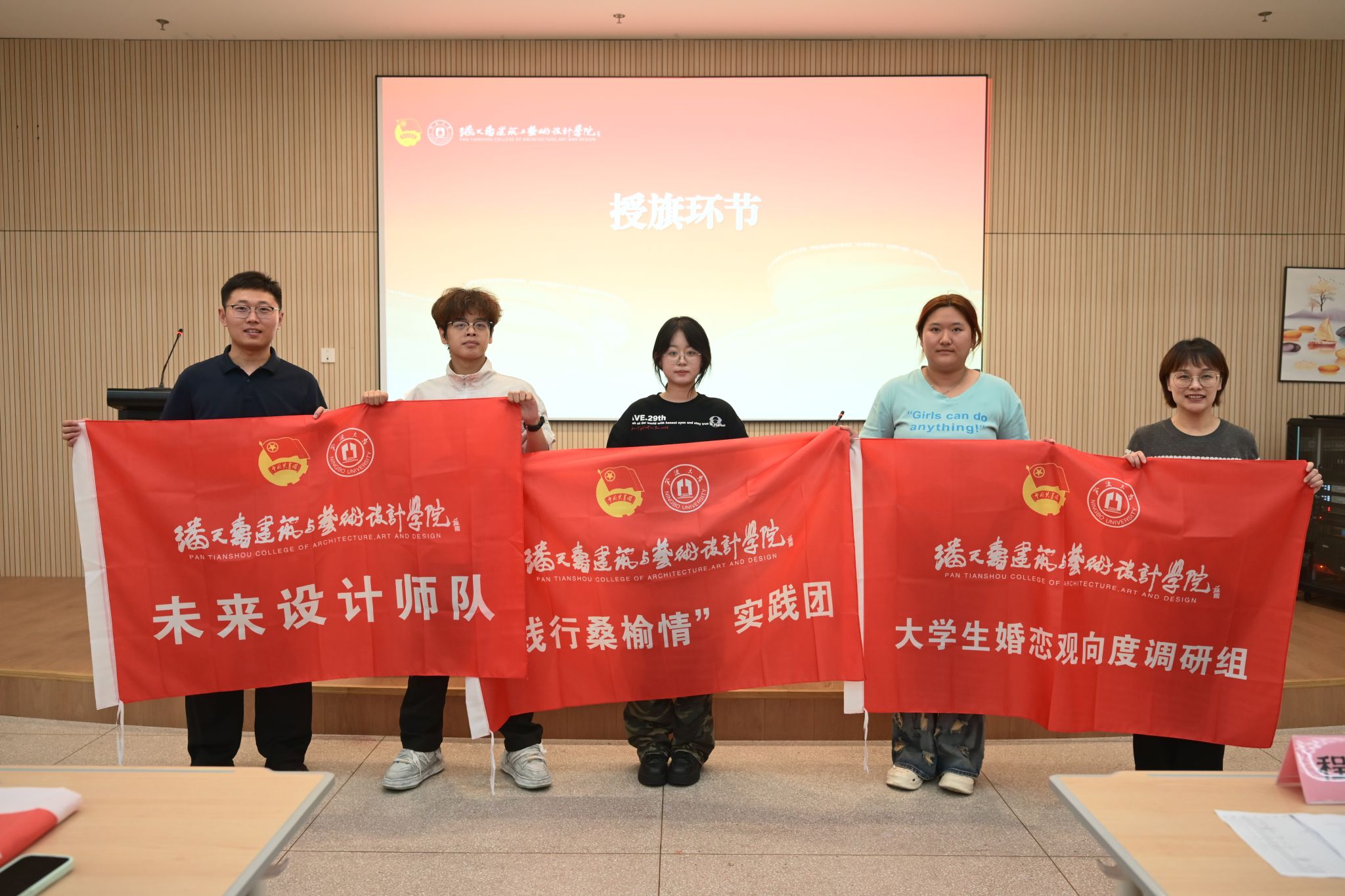 随后,与会老师向暑期社会实践各支队伍授旗,鲜红的旗帜承载着电影天堂
