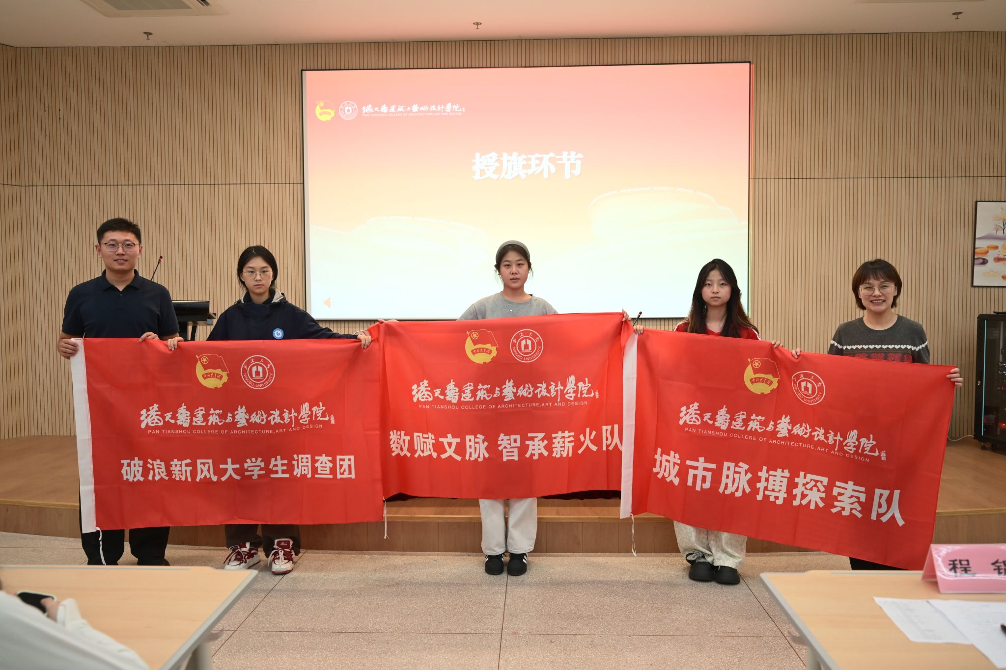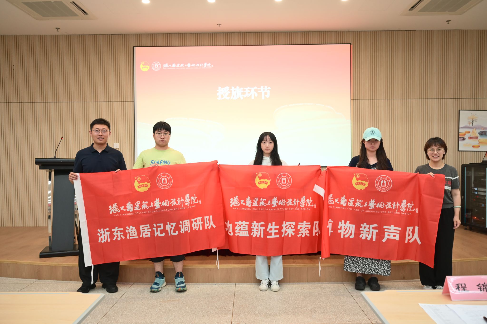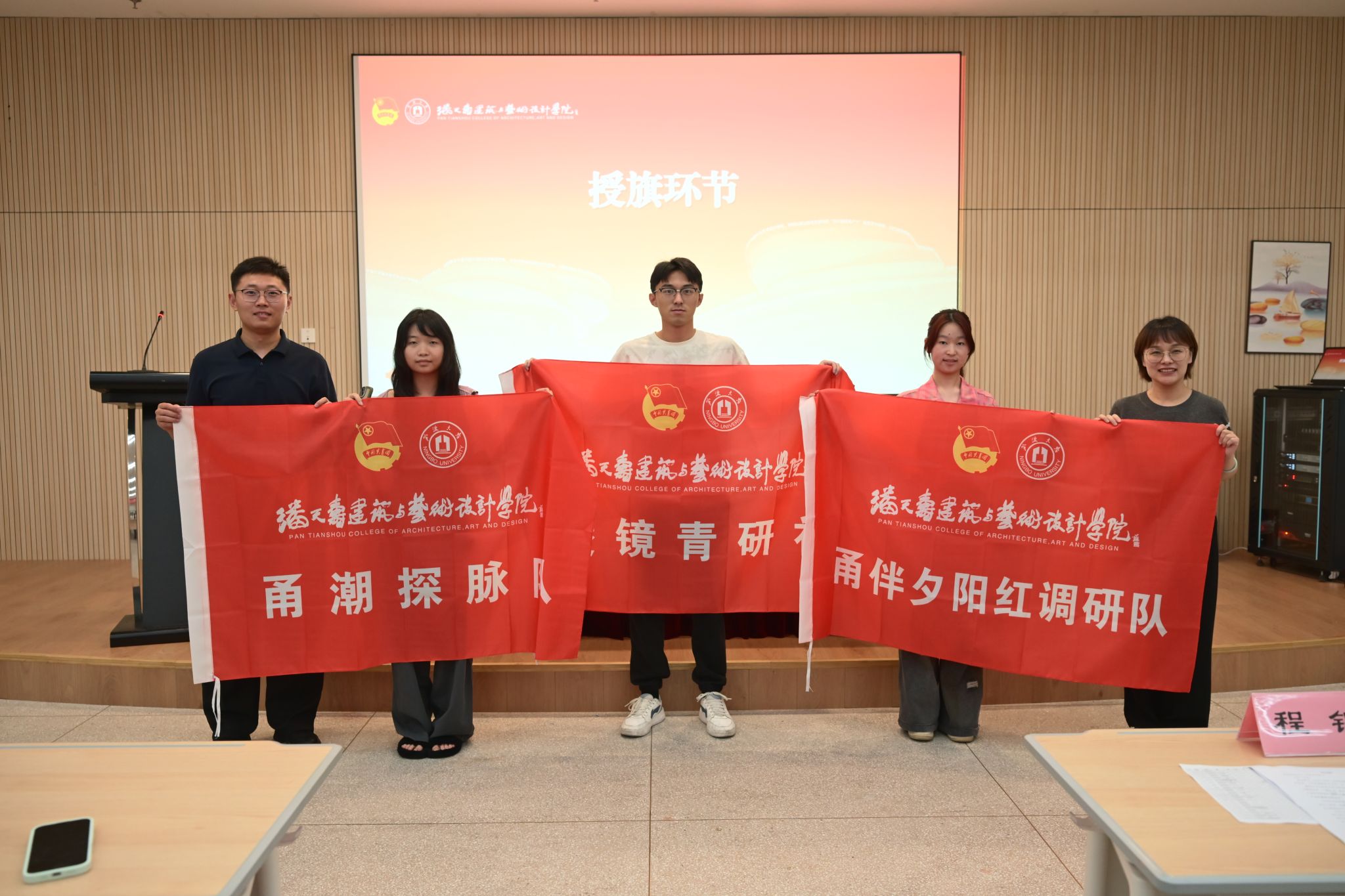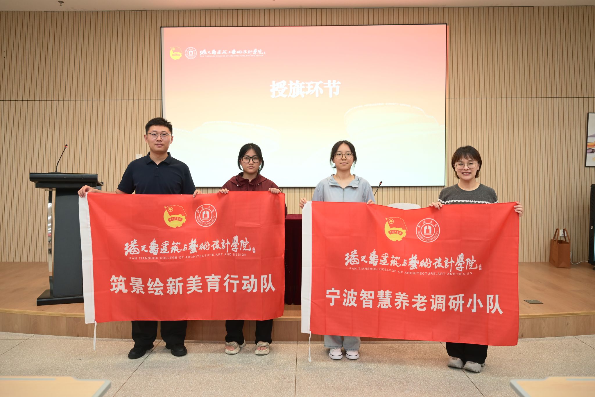 随后,与会老师向暑期社会实践各支队伍授旗,鲜红的旗帜承载着电影天堂