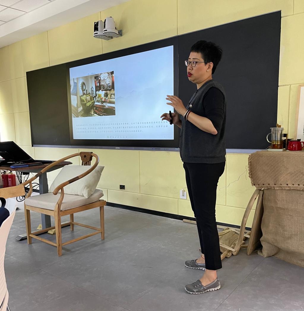 课后老师们开展了深入的研讨。在场老师表示王园园老师上课调理清晰、步步引入,课堂气氛活跃,教具丰富,实操性强,师生之间互动性好;老师们表示在实践中体验到了传统家具的设计美感。