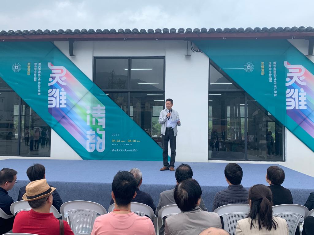 策展人邵良老师、毕业设计指导教师代表刘胜利老师、优秀毕业生代表刘铮同学分别作了发言。
