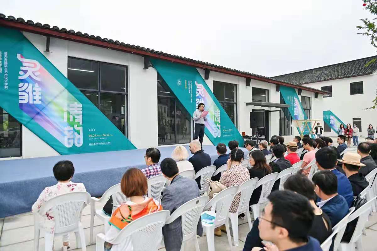 2021届优秀毕业作品展在鄞州区东吴镇太白湖广场开幕。