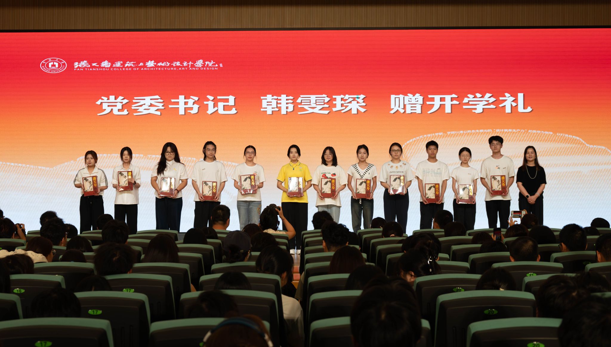 欢迎会上,党委书记韩雯琛向学生代表赠送了潘天寿先生画册作为“开学礼”,期望新一代潘艺学子能够站在巨人的肩膀上,汲取传统精华,面向未来创造,将宝贵的艺术精神内化于心、外化于行。