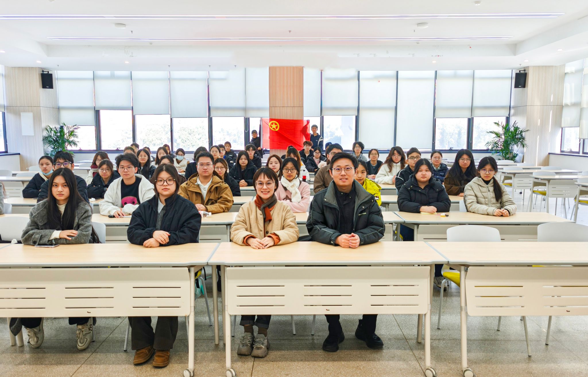 团委副书记程锦、新发展团员、新任团支书及入团积极分子近50人参加,开班仪式由张彧芃同学主持。开班仪式上,程锦老师强调了共青团工作在高校思想政治引领中的重要作用,并希望同学们珍惜学习机会,坚定理想信念,锤炼过硬本领,努力成长为一名“政治坚定、德才兼备、素质全面”的优秀青年马克思主义者。