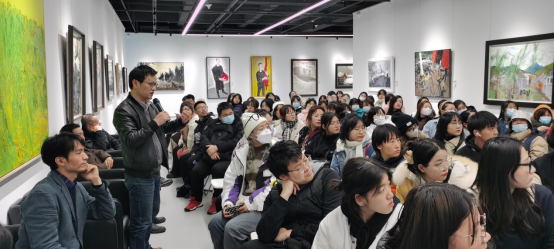 基础部大一110名艺术设计大类的同学们,在任课老师徐时程、高鸿、胡秋波、陈晟的组织下,前往宁波纳得美术馆参观“写意精神——2021全国艺术院校油画名家邀请展”,适时把美术课堂安排在美术馆、使学生直接面对原作观摩学习的教学新形式。