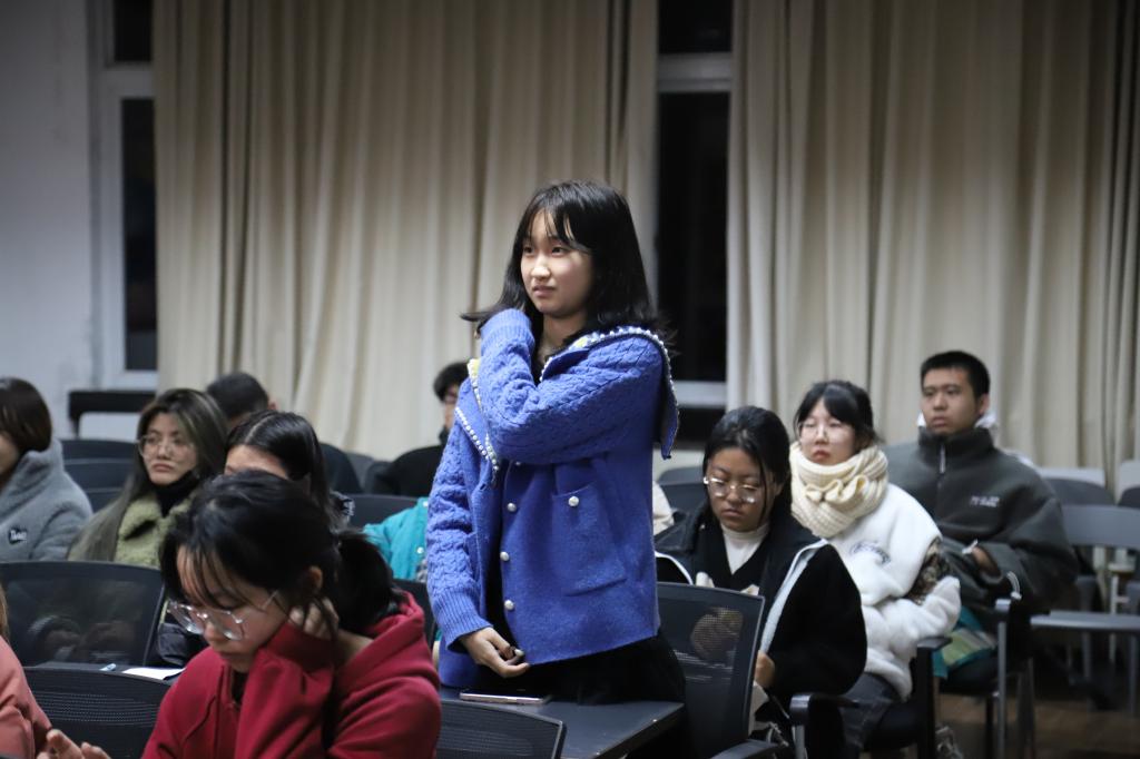 面对大家的困惑,刘老师结合工作实践经验和生动形象的案例为大家解惑。在团学工作方面,刘老师指出“态度”的重要性,希望同学们对待工作能够有积极的态度,尽自己所能去完成工作,要有迎难而上的精神;在面对工作和学业上的矛盾方面,刘老师希望团学成员能平衡好两者的关系,以学业为重,在抓好学习的同时,努力做好团学工作,履行为潘艺学生服务的义务;在团学组织的活动方面,刘老师指出团学活动要体现时代性,与国家、时代发展相结合,与电影天堂
