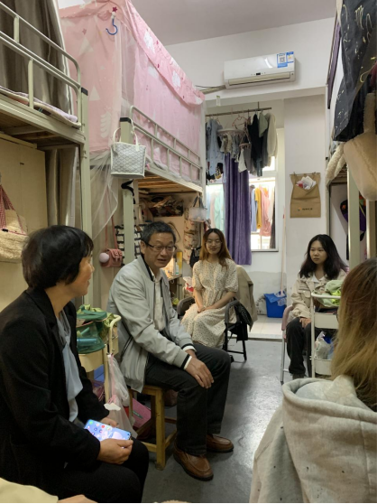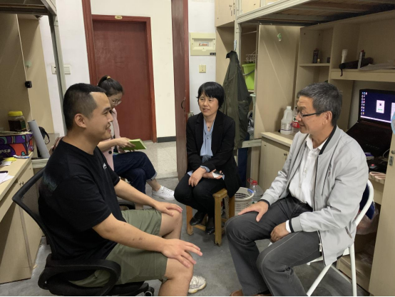冯杰来到甬江公寓5号楼337寝室,与寝室的四位同学亲切交流,关切地询问了同学们目前的学习生活情况。当得知寝室四位同学均立志考研时,冯书记结合自身的成长经历,强调了考研深造的重要性。同时希望同学们能够养成长久良好的运动习惯,每天坚持运动一小时,培养一项体育爱好并成为一生的兴趣,追求自身的全面发展 。