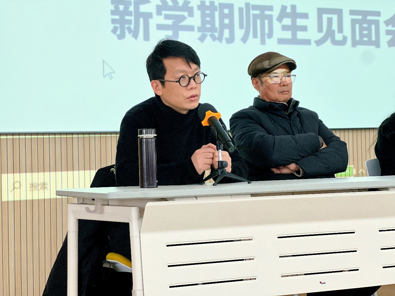 2月24日下午,我院视传与数媒系在黄庆苗黄陈月莉伉俪楼群213会议室举行了新学期全系师生见面会。院学术委员会主任周至禹,副院长周艳、院党委副书记刘秉印、数传与数媒系主任王泽闻、副主任王若、副主任邱启雄、艺术设计专硕负责人董荪及全系师生参加,见面会由王泽闻主持。