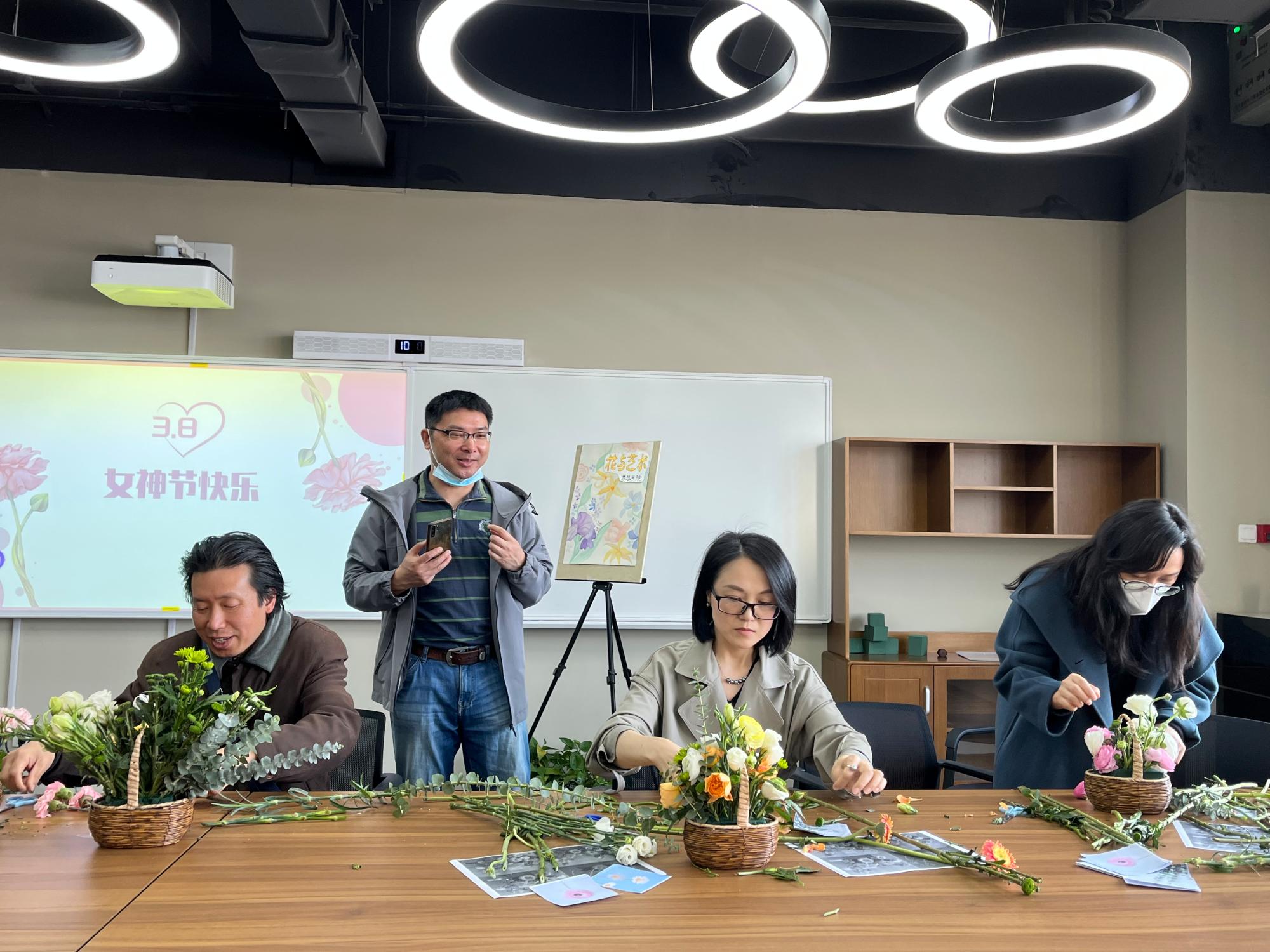 在黄庆苗黄陈月莉伉俪楼群教学楼7楼公共空间举办庆祝“三八”国际妇女节艺术插花活动。