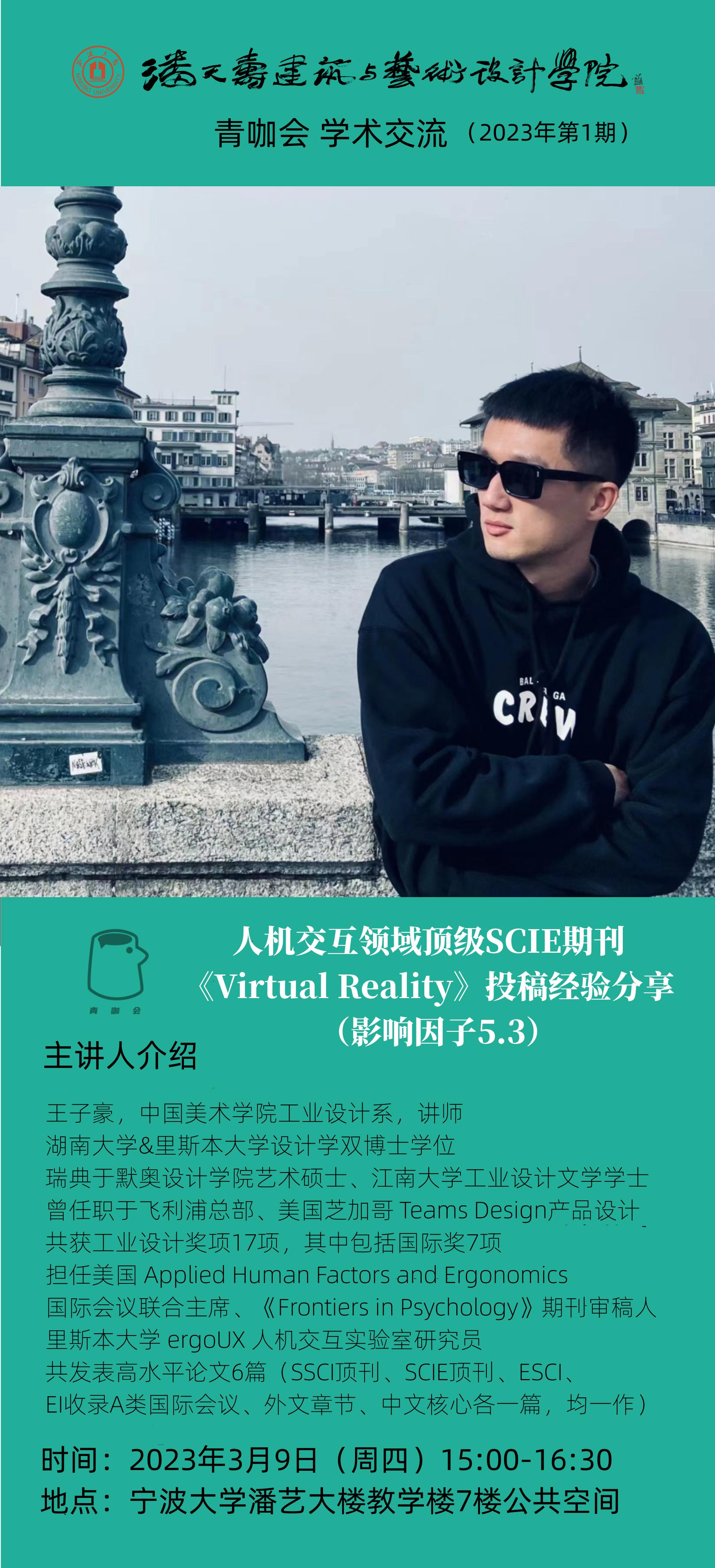 除了教学经验分享外,王老师还从“科艺结合”的设计思维视角,分享了作为艺术生背景出身的他是如何开展学术科研的经历。他以他在葡萄牙里斯本大学攻读双博士学位期间,发表在人机交互设计领域顶级期刊——《Virtual Reality》上的一篇文章为例,向我们详细介绍了其如何选题,如何开展实验设计,以及如何在此基础上进行论证的科研过程,同时还分享了他的论文投稿经验。