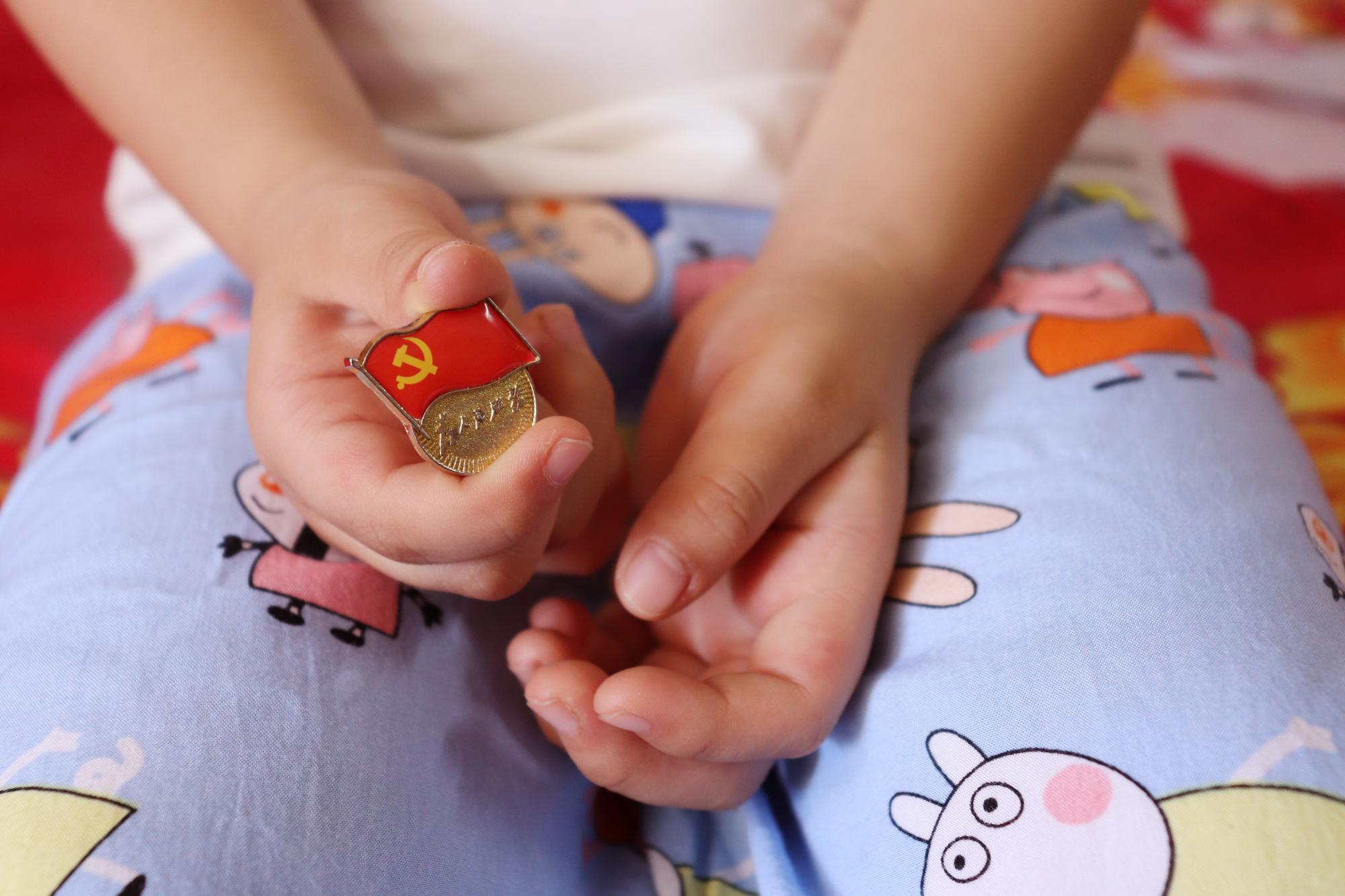 展览受到了省内76余所高校的积极响应和参与,共收获书画、摄影作品近500件,最终遴选155件作品参展,彰显了新时代高校辅导员群体昂扬的精神面貌。蔡黎明老师的作品《传承》表现了老、中、幼三代人在拿到中国共产党党徽时手的不同姿势,从捧在手心到双手擎举再到捏在手指间,彰显了在中国共产党的引领下,中华儿女为伟大祖国繁荣昌盛接续奋斗的坚毅品质。蔡黎明还表示,会在未来的工作中继续推进以美育人,落实立德树人的根本任务。
