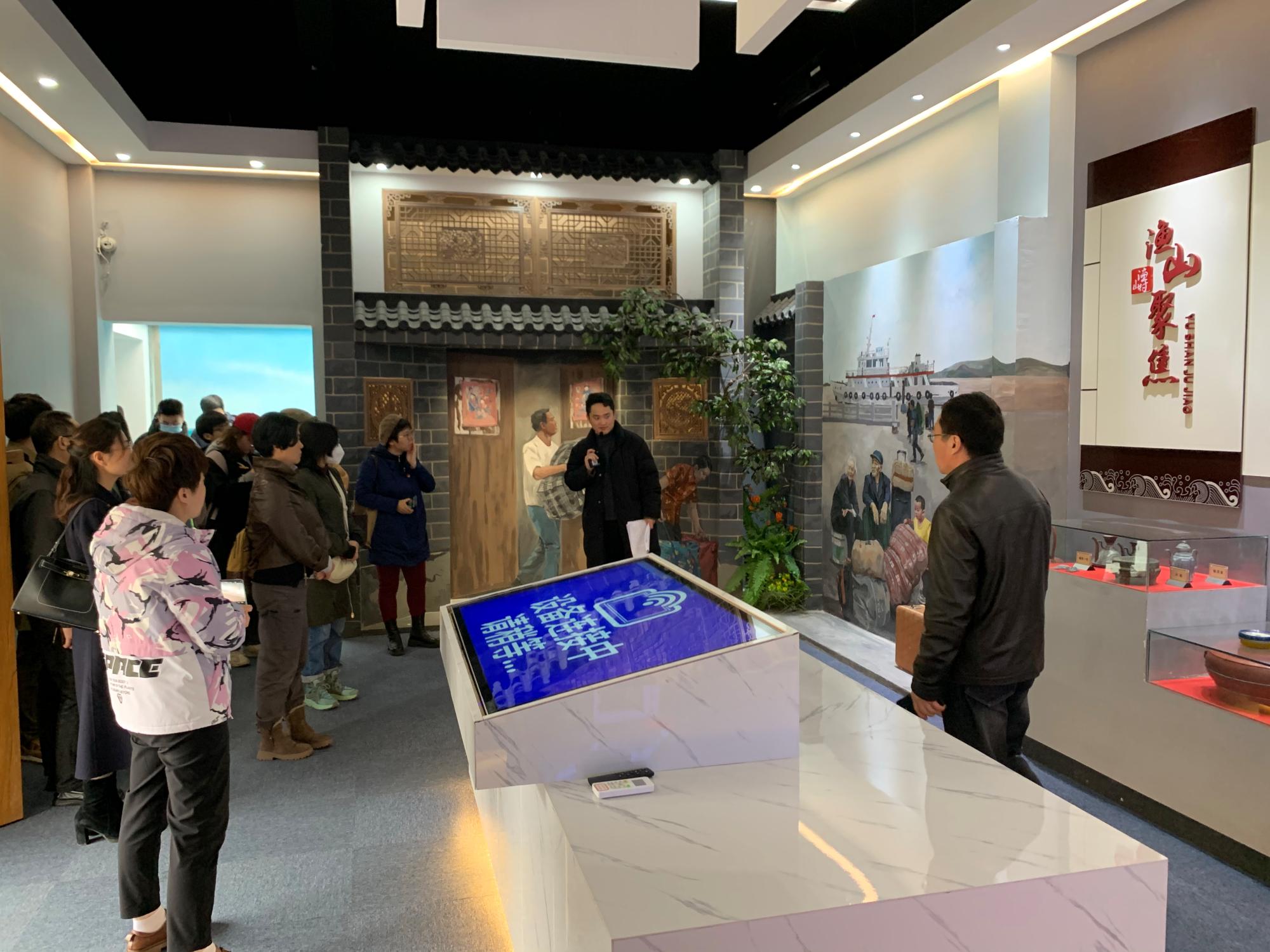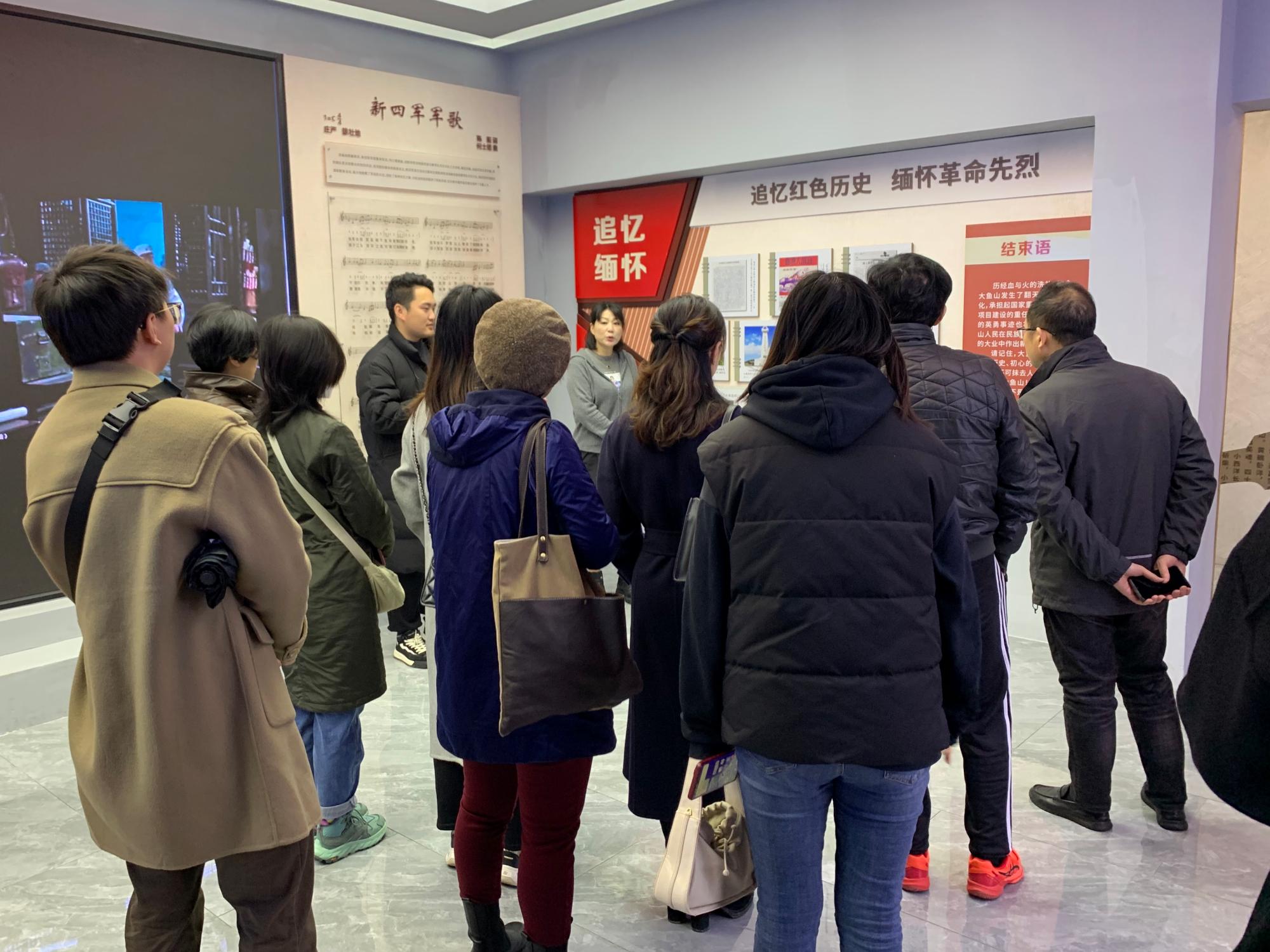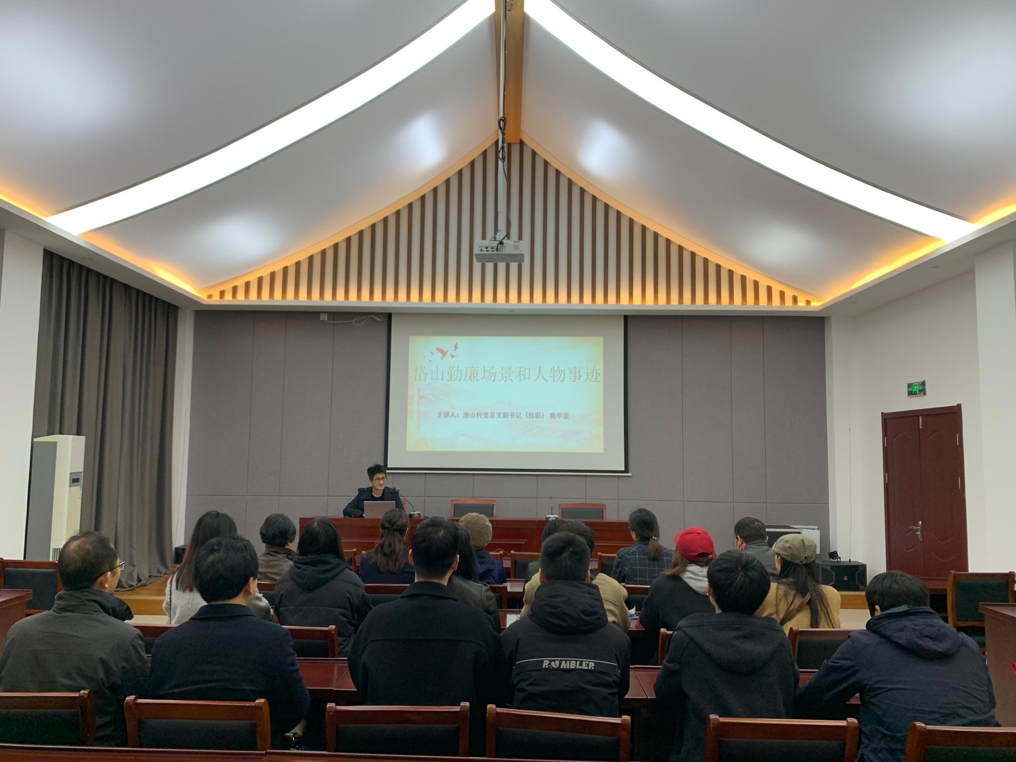 当天上午,师生党员一行走进岱山红色传承馆,共同学习“海上狼牙山之战”的大鱼山战斗革命事迹,结合2015年鱼山岛配合国家重点项目工程建设整岛搬迁背景,详细了解了鱼山岛旧貌、整岛搬迁以及渔山新村乡村振兴、舟山绿色石化基地如火如荼建设场景,直观感知了鱼山人民红色基因中蕴含的“舍小家为国家”的家国情怀。随后,在清风讲堂,活动邀请渔山村党总支副书记(挂职) 姚华波老师主讲《岱山勤廉场景和人物事迹》专题党课,让师生们更为丰富地了解了岱山盐民运动奠定的红色革命群众基础、爱民为民的“旗帜”——岱山罗家岙派出所等现当代不同的勤廉场景和勤廉人物榜样。