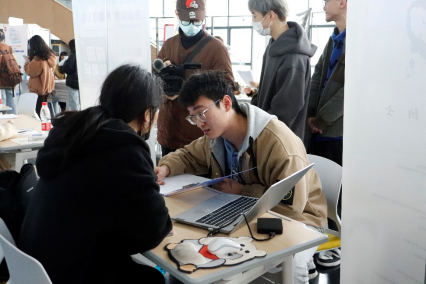 领导及老师们动员多方力量,邀请相关用人单位来参加此次招聘会。本次招聘会共有40家优质企业齐聚我院,进行线下专场招聘。其中包括黑蚁工业、欣捷建设、明锐工业、得力集团、触动文化传媒、迪赛等,还有中雅万志工程设计、美象科技、科导文化科技、格莱雪、凡凡工业设计等校友企业,人才需求涉及平面设计师、工业设计师、产品设计师、建筑设计、技术美术、美术工程师、文创设计师等多岗位,我院2023届毕业生与低年级学生共计400余人参加了此次招聘会。