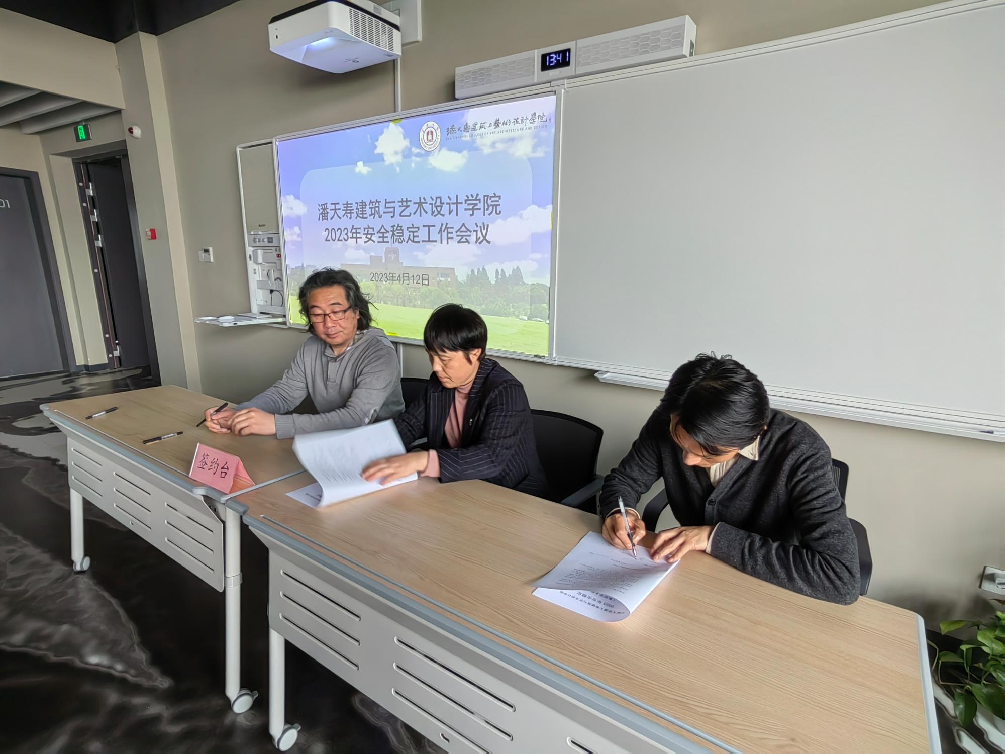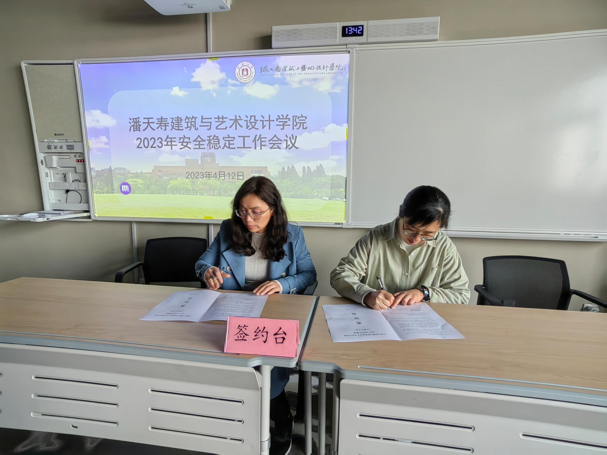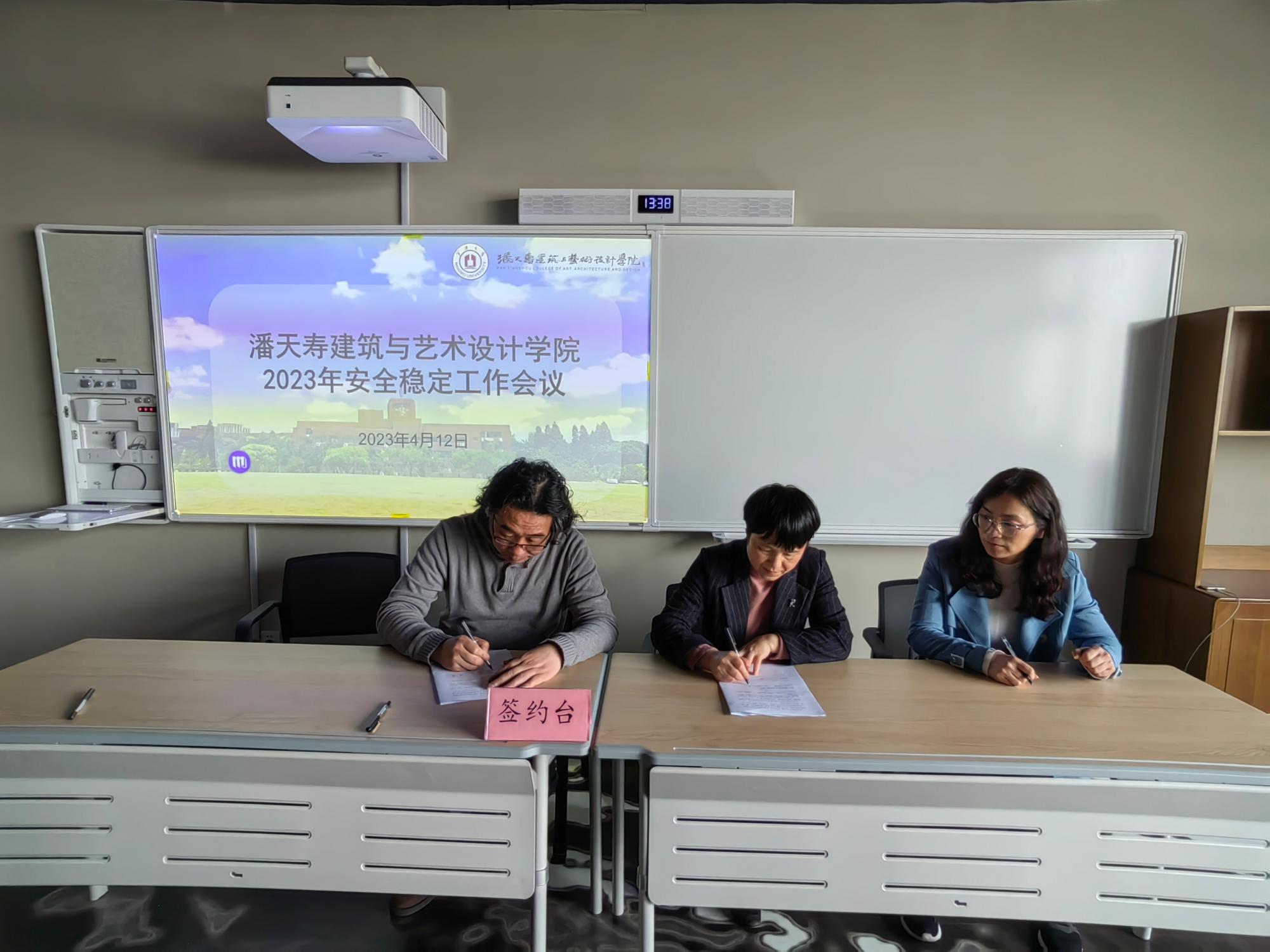 随后,执行院长陆海、党委书记徐一萍与分管院领导周艳、刘秉印,党政办主任宁婷婷、视传系主任王泽闻、美术系主任马善程等各办、学科系代表签订安全稳定责任书;副院长周艳与教务办主任姚艳、实验室主任梁翎签订安全稳定责任书;党委副书记刘秉印与学工办主任陈颖签订安全稳定责任书。
