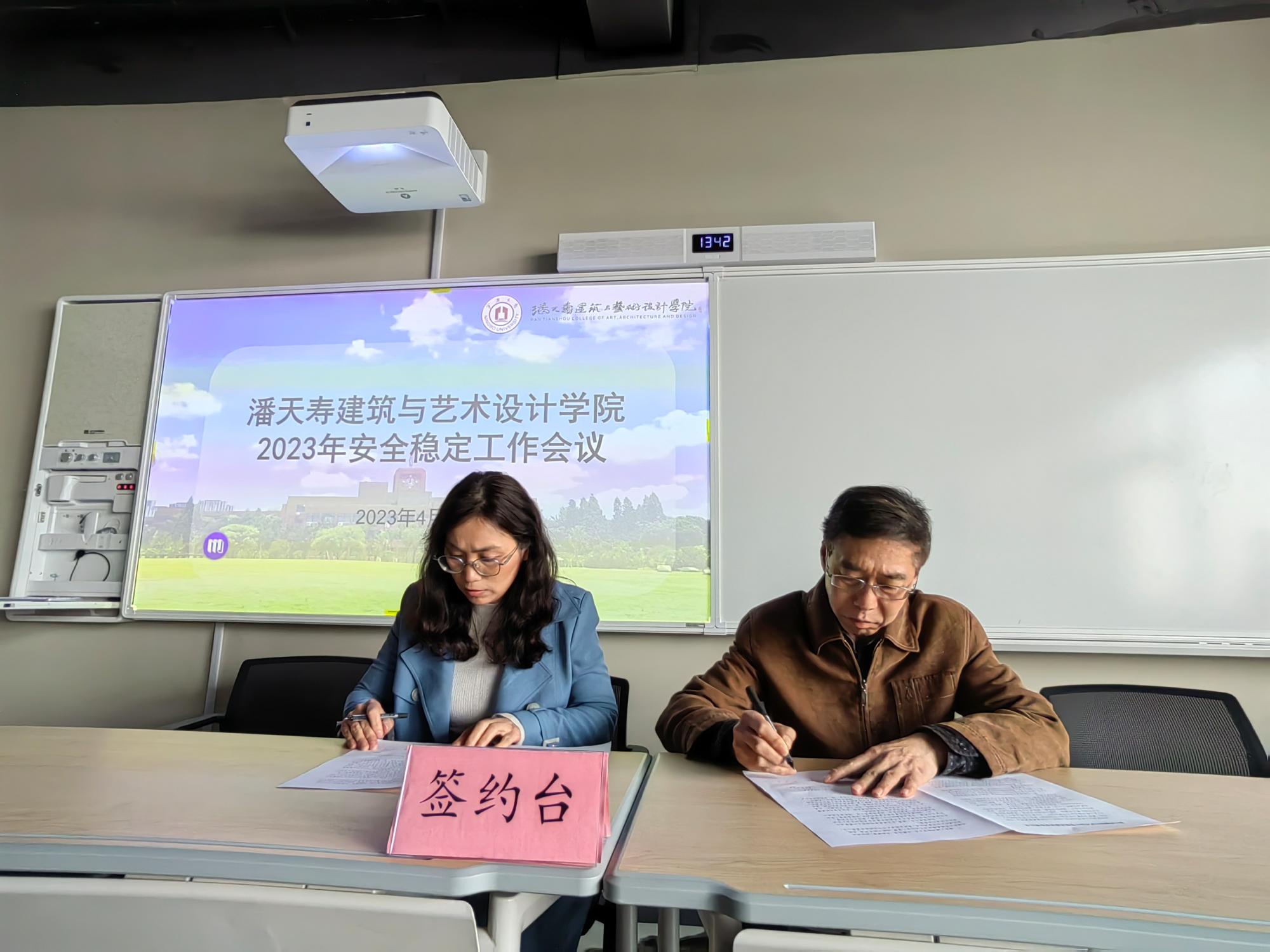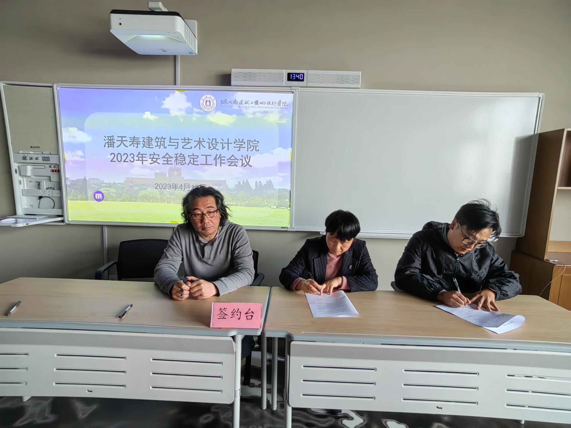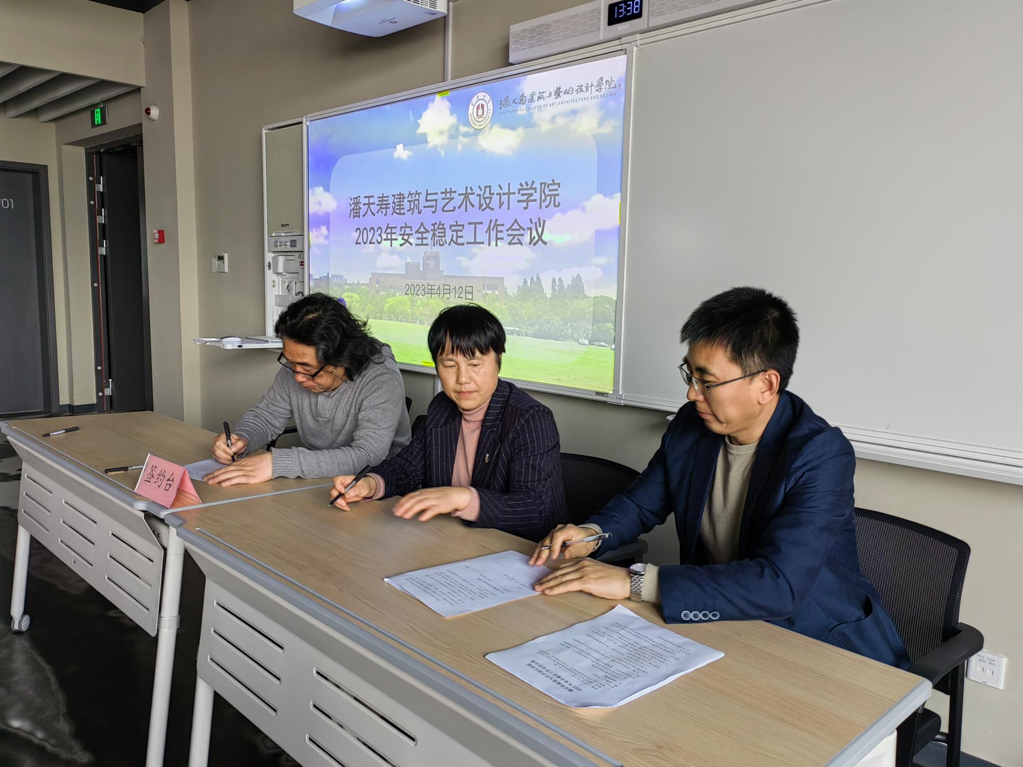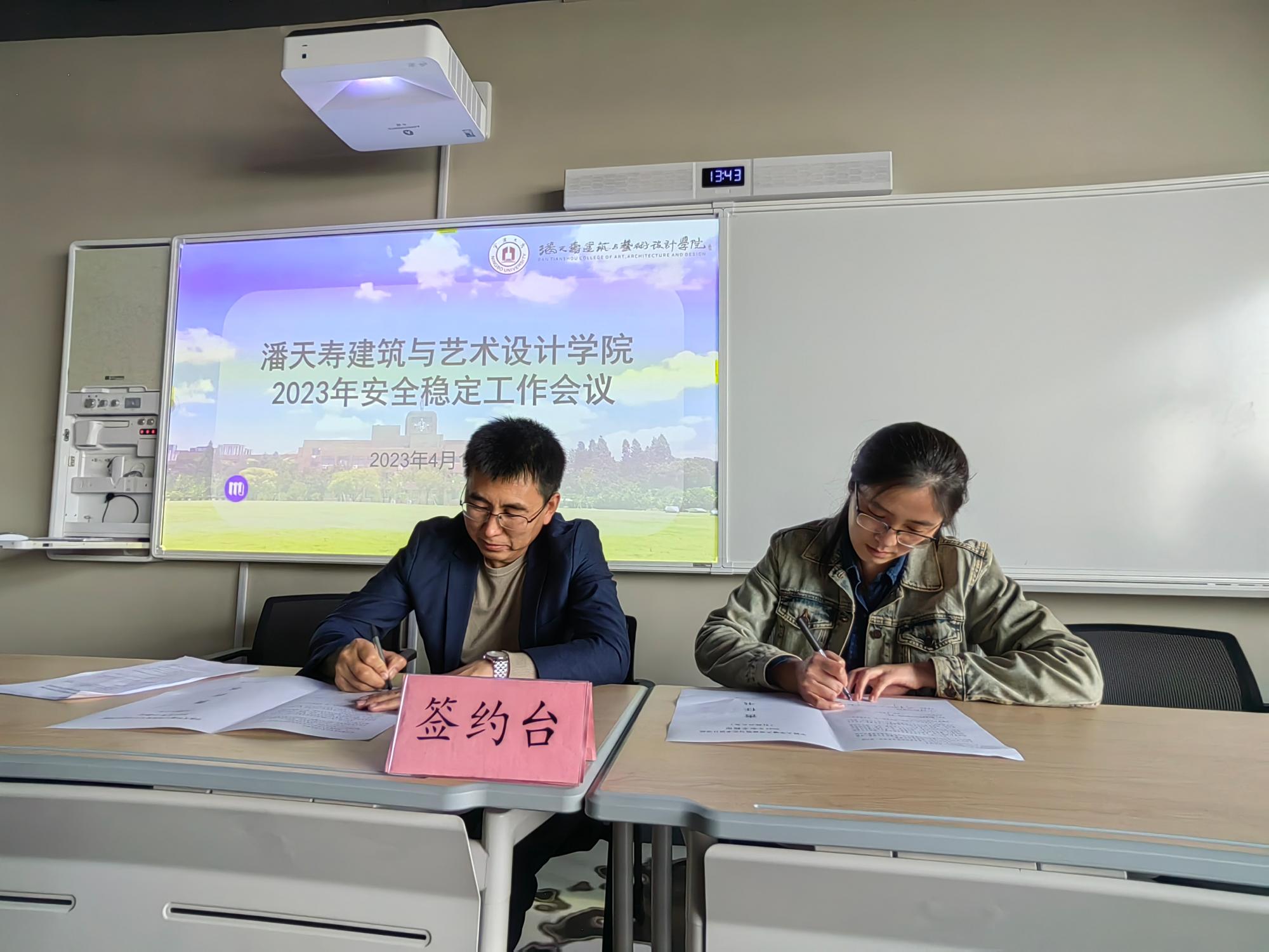 随后,执行院长陆海、党委书记徐一萍与分管院领导周艳、刘秉印,党政办主任宁婷婷、视传系主任王泽闻、美术系主任马善程等各办、学科系代表签订安全稳定责任书;副院长周艳与教务办主任姚艳、实验室主任梁翎签订安全稳定责任书;党委副书记刘秉印与学工办主任陈颖签订安全稳定责任书。