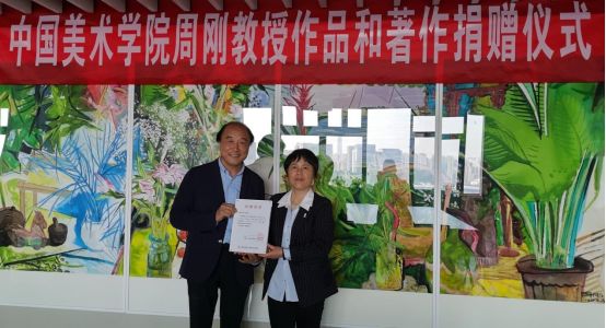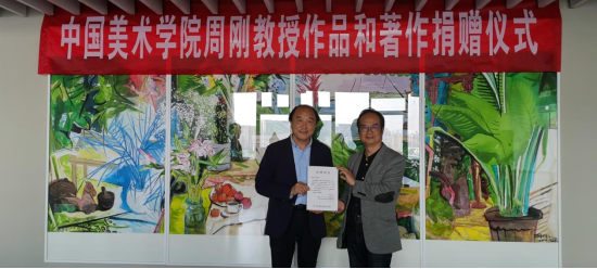 党委书记徐一萍和学术委员会主任周至禹教授分别向周刚教授颁发了作品捐赠证书和图书捐赠证书,并对周刚教授助力我院美术专业教学和学术研究表示了诚挚的谢意。本次活动由美术系主任陈晟博士主持。