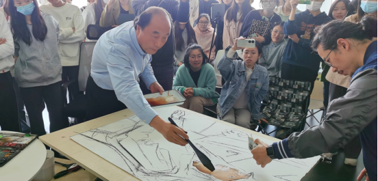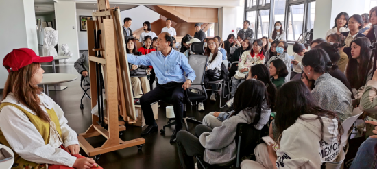 美术系六楼新美学艺术空间举办。周刚教授首先以《生活与创作》为题向在场的师生谈到艺术创作源于生活,并结合自身艺术阅历建议大家精准定位,寻求独特的艺术方式和语言,在艺术的道路上精益求精。第二阶段,他为在场的师生做了精彩的水彩人物写生示范,完成了一幅具有独特艺术面貌和技巧精湛的水彩画作品,周刚教授高超的艺术造诣折服了现场的艺术学子。这次活动为我院师生提供了一次与艺术名家面对面交流和观摩写生的良好学习机会。