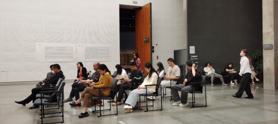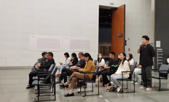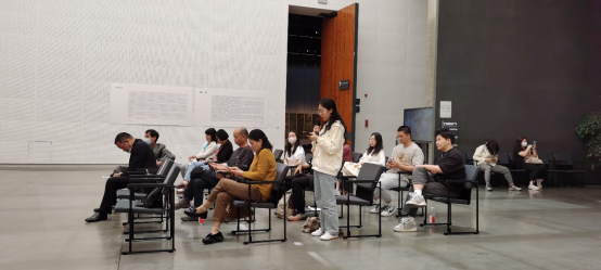 在艺术沙龙活动中,美术系主任陈晟老师介绍了我院在综合材料绘画教学和研究方面的情况,并带领美术系的同学踊跃提问。