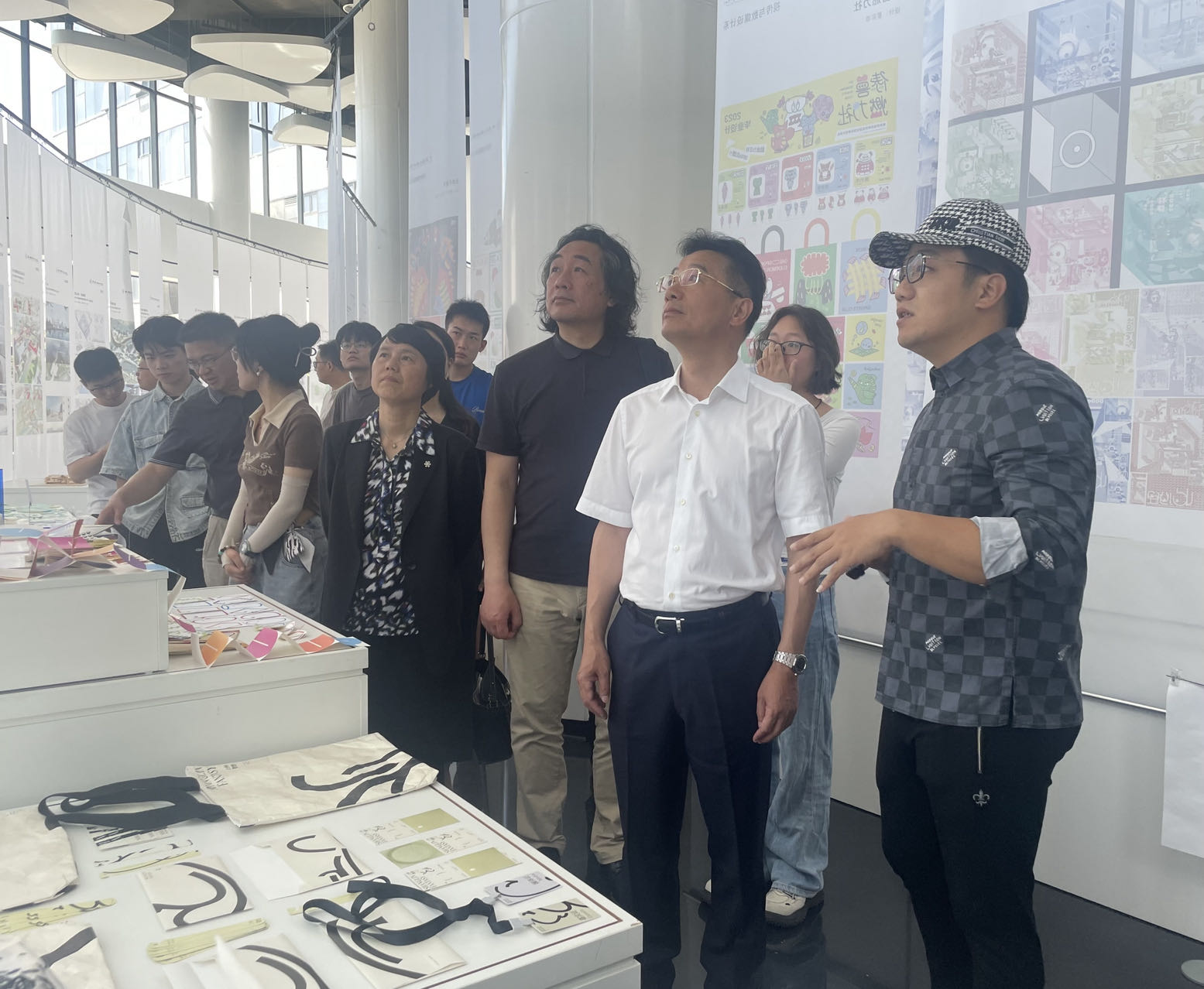 工业设计系教师许江为朱书记介绍学生作品